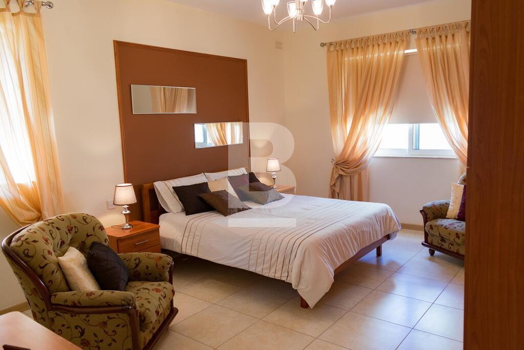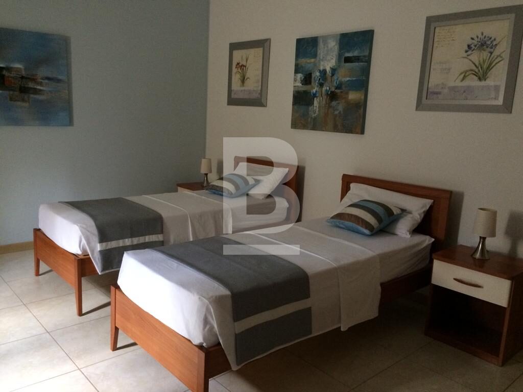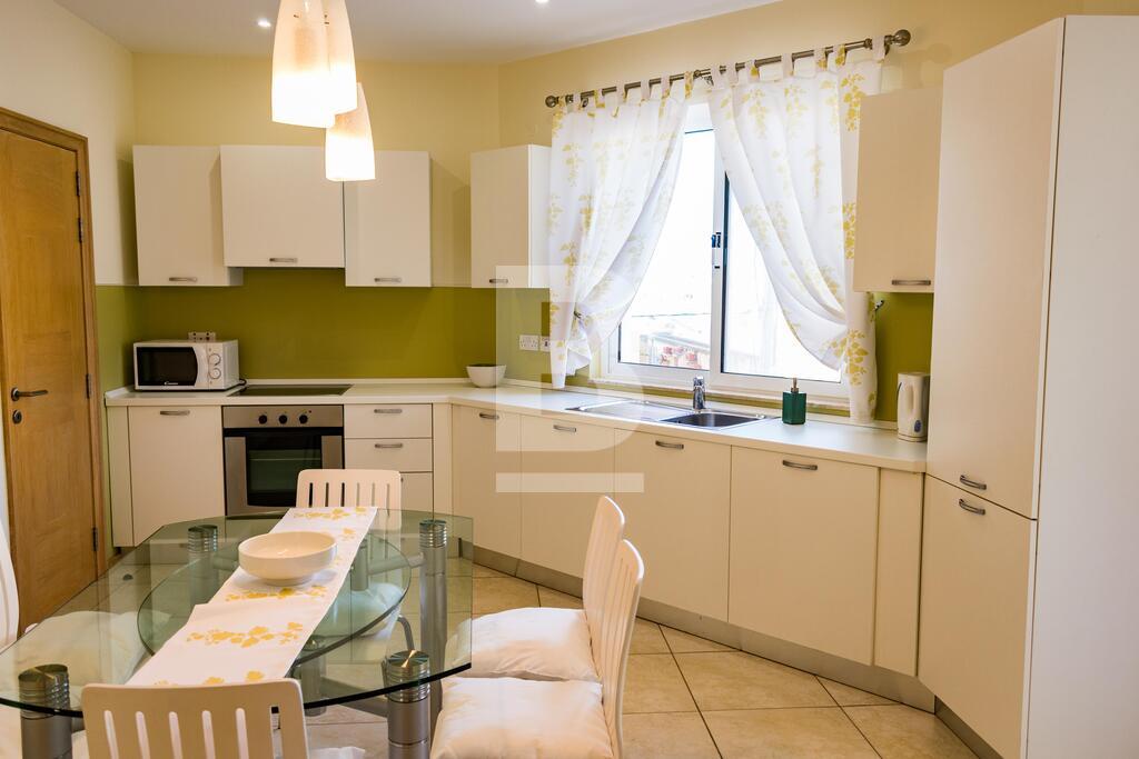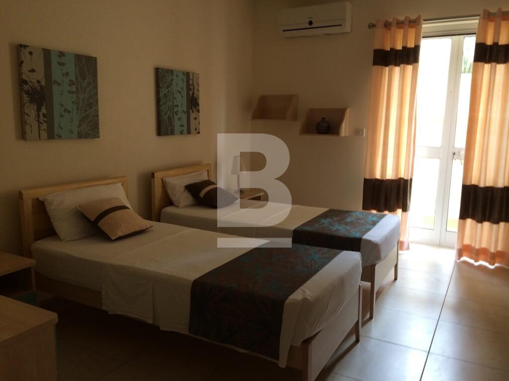Highly finished and fully furnished maisonette situated in this very central and quiet residential area, within walking distance to the picturesque Spinola bay and all amenities. Property comprises of an entry hall, bright and spacious living /dining area leading to a good size courtyard and a terrace. A fully-fitted kitchen / breakfast area with a larder. 3 double bedrooms (main with en-suite facilities), and a main bathroom which includes a bedee. Property is equipped with air-conditioning units in all 3 bedrooms and living area, and includes a washing machine, tumbledrier, dishwasher and a television amongst other appliances. The property is equipped with mosquito nets throughout all the double glazed apertures. A three phase electric meter is installed in the maisonette to eliminate any electric issues with overloading. The property is fully detached thus it is very airy and enjoys natural light throughout the day. No parking issues in the neighborhood however including in the package is a lock up garage and a small storage room. The garage is directly interconnected with the maisonette by means of a private coded lift for more security, comfort and easy access. Angelus maisonette is the ideal place for a family who is seeking comfort, safety and well-being. No pets please. Viewing is highly recommended!