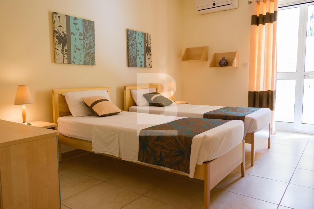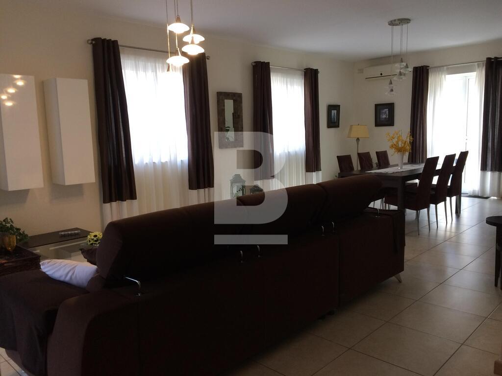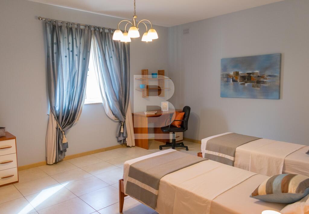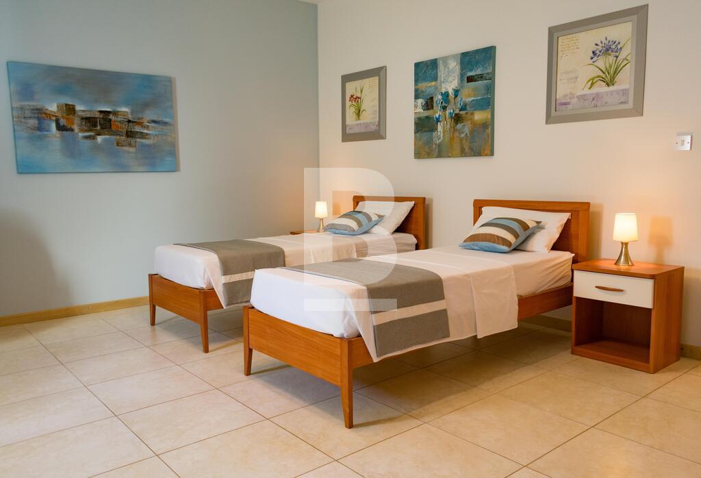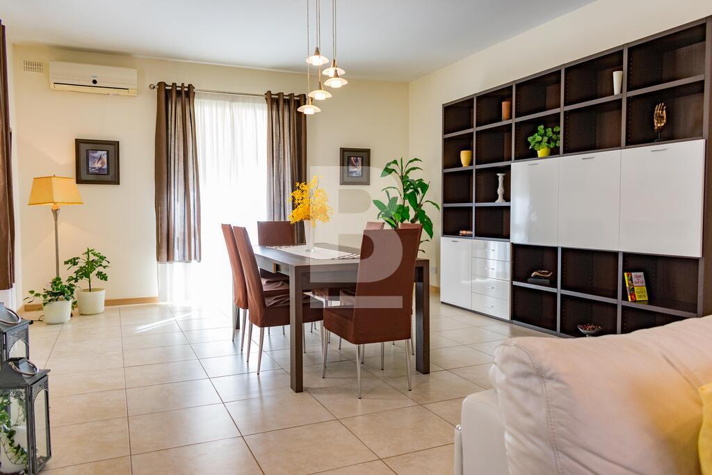 Highly finished and fully furnished maisonette situated in this very central and quiet residential area, within walking distance to the picturesque Spinola bay and all amenities. Property comprises of an entry hall, bright and spacious living /dining area leading to a good size courtyard and a terrace. A fully-fitted kitchen / breakfast area with a larder. 3 double bedrooms (main with en-suite facilities), and a main bathroom which includes a bedee. Property is equipped with air-conditioning units in all 3 bedrooms and living area, and includes a washing machine, tumbledrier, dishwasher and a television amongst other appliances. The property is equipped with mosquito nets throughout all the double glazed apertures. A three phase electric meter is installed in the maisonette to eliminate any electric issues with overloading. The property is fully detached thus it is very airy and enjoys natural light throughout the day. No parking issues in the neighborhood however including in the package is a lock up garage and a small storage room. The garage is directly interconnected with the maisonette by means of a private coded lift for more security, comfort and easy access. Angelus maisonette is the ideal place for a family who is seeking comfort, safety and well-being. No pets please. Viewing is highly recommended!