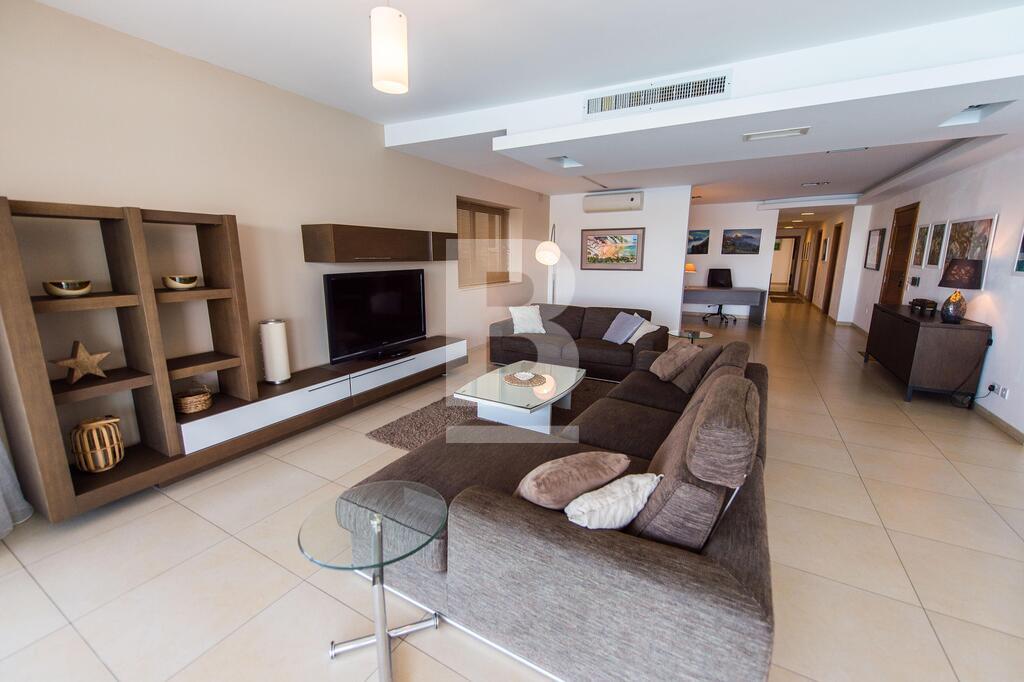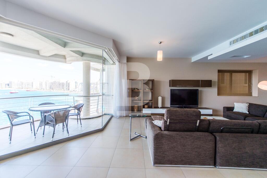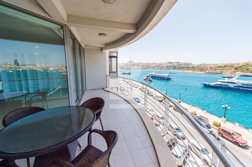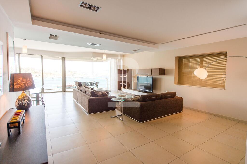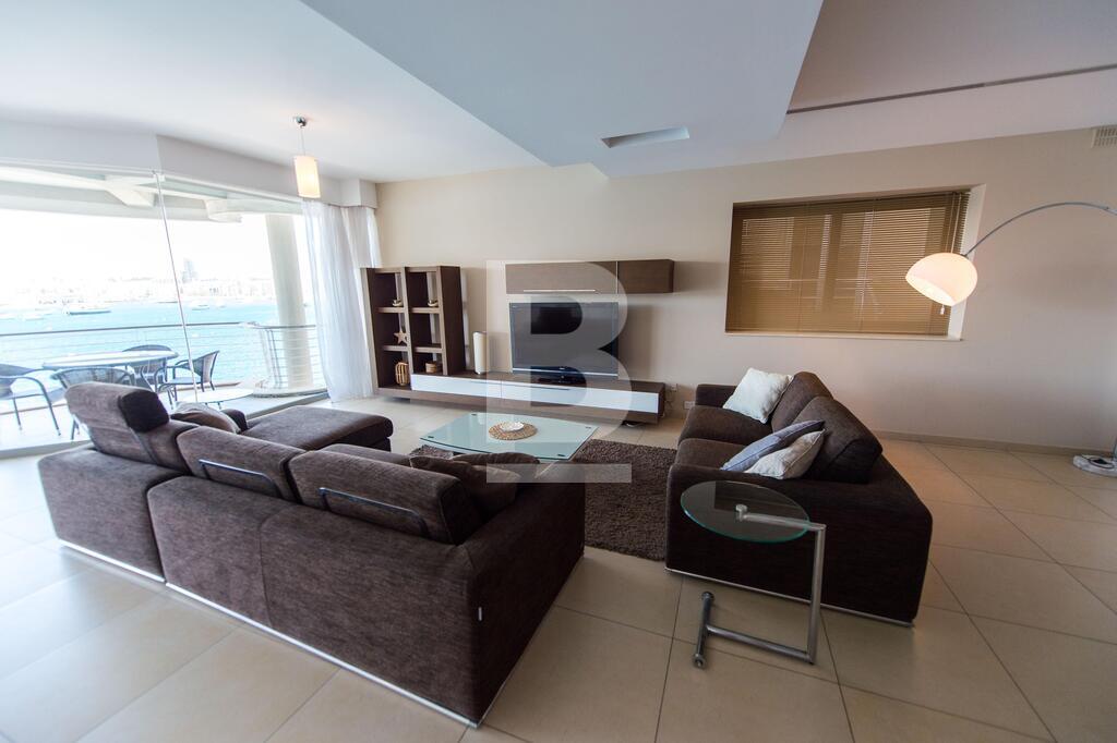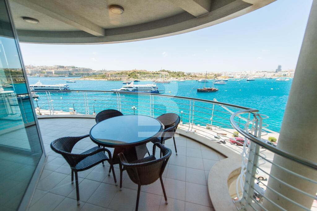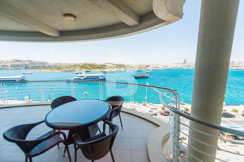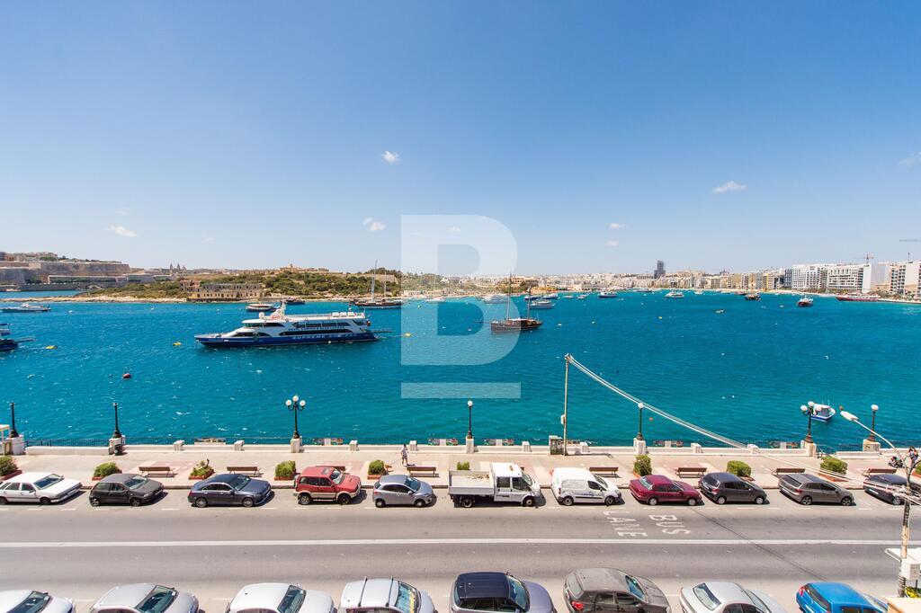 A superior sea front corner apartment enjoying a wide frontage with spectacular views of the Valletta bastions, Manoel Island and Creek. It is located in one of Sliema\'s most sought after location close to Nazzarenu Church. Property consists of welcoming hall, huge open plan sitting and kitchen/dining room leading to front terrace enjoying the views, 3 double bedrooms (main with shower en-suite), main bathroom and washroom. Property is fully air conditioned and includes an LCD TV, dishwasher , microwave , washing machine and tumble Dryer. Car space optional