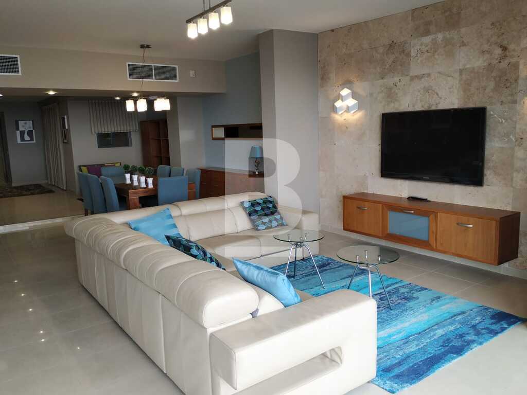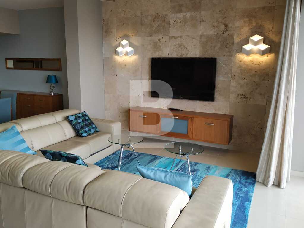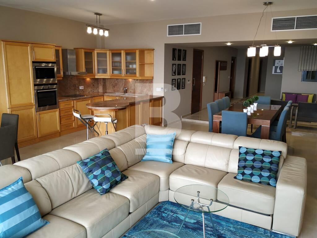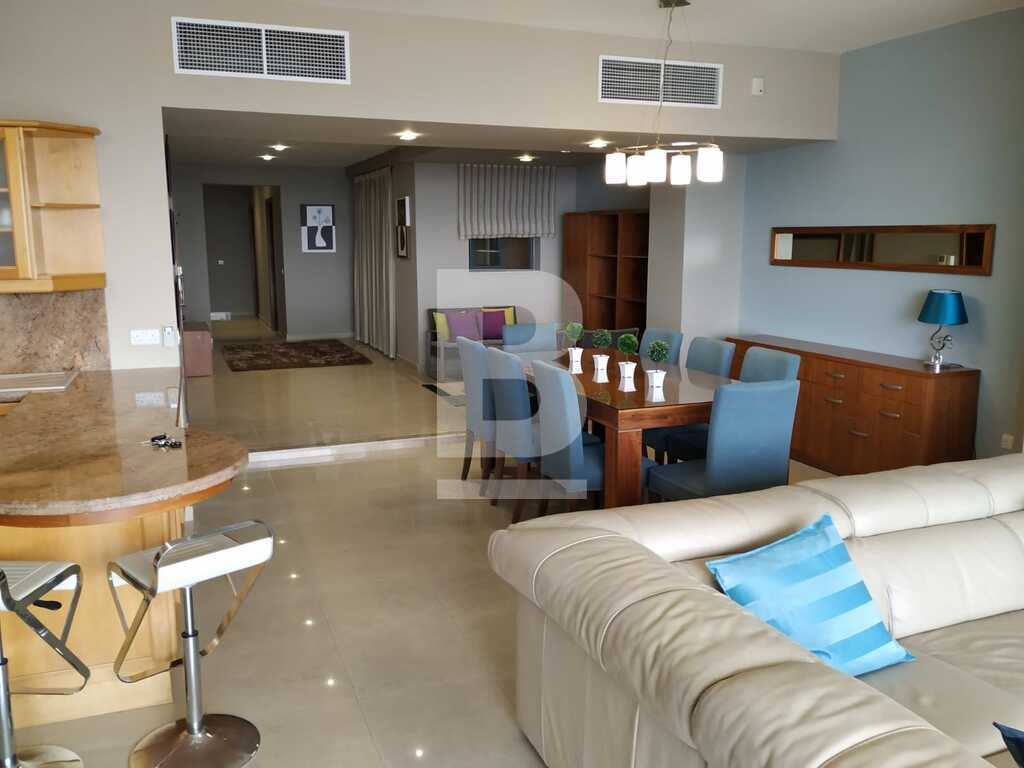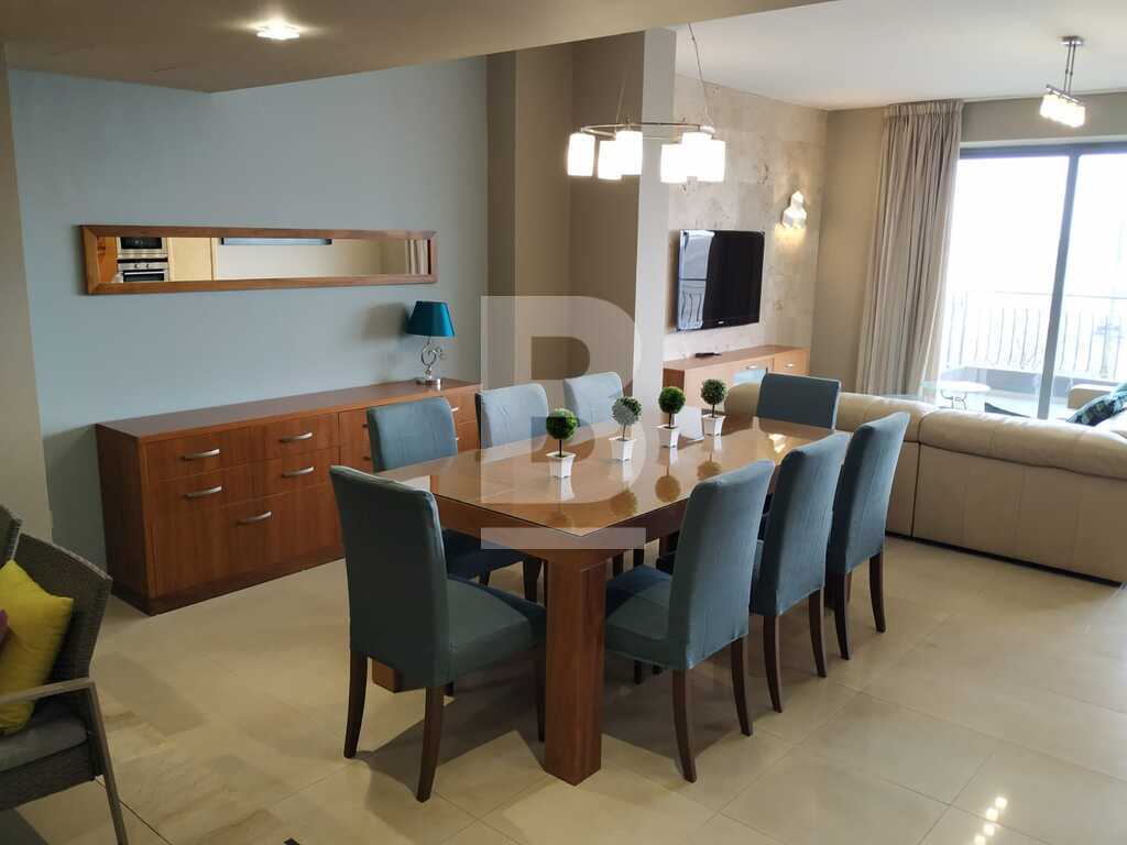 Elegant, first floor seafront apartment located in central area. Accommodation comprises entrance hall leading to a spacious open plan living and formal dining area with seating for 6x pax, stylish fully fitted kitchen and bar with casual dining for 4x pax leading to a furnished balcony overlooking unobstructed sea views. There are 3 bedrooms (main with shower ensuite), bathroom and box room. Apartment is fully equipped with airconditioning units and includes TV, dishwasher, washing machine and all other amenities. Includes one car space.