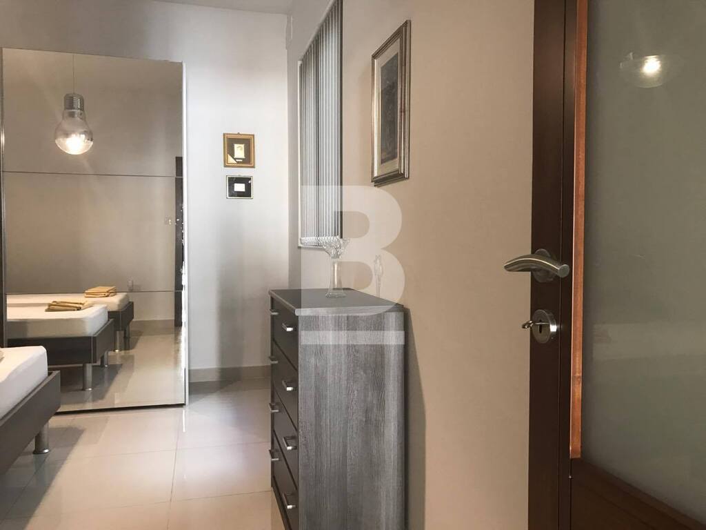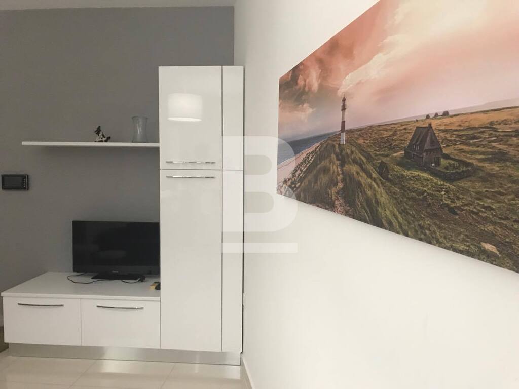 A modern, recently fully furnished 2 double bedroom apartment, located only a stone’s throw away from all amenities & a few minutes’ walk to the centre of San Gwann. Property consists of an open plan kitchen / living / dining room, leading to 2 double bedrooms (master with en-suite and own large patio with side country valley views), second with twin beds. This sharp property has a main bathroom with a large bathroom, fully equipped with air conditioning in every room and includes a fully equipped kitchen, flat screen TV, video hall porter and disability access.