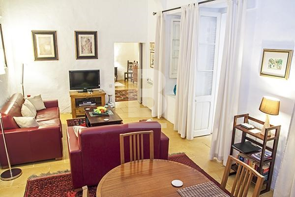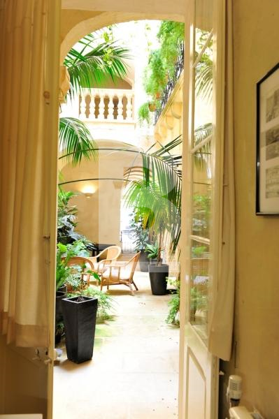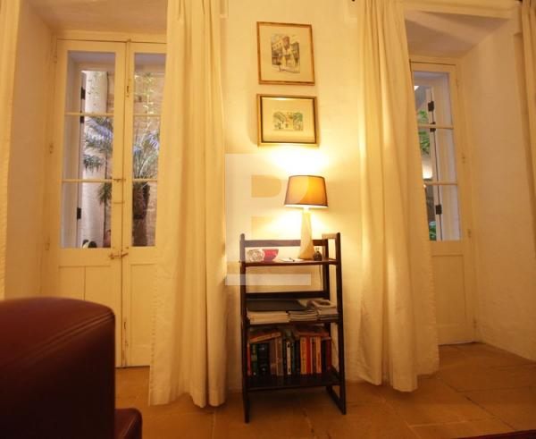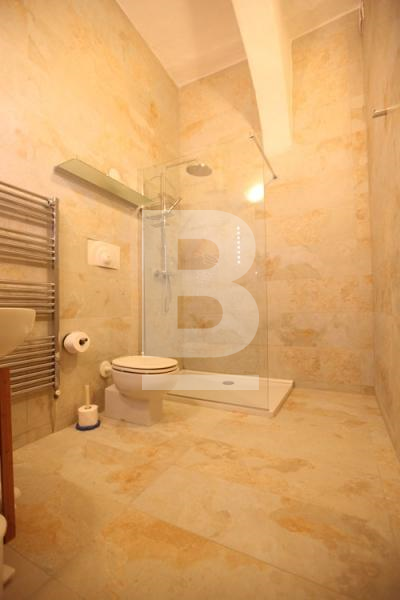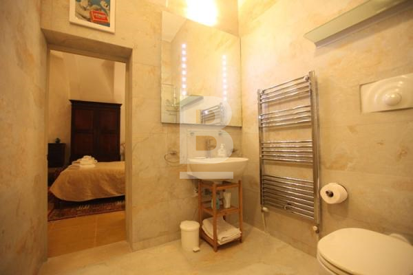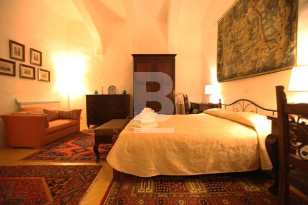 Spacious ground floor apartment with direct access to a Palazzo’s internal courtyard. This charming apartment consists of a large living area with a separate seating and dining area. There is a comfortable custom-made leather sofa bed which can also accommodate an extra 2 guests. The fully equipped kitchen is in a separate room and has access through the courtyard. Main bedroom is air-conditioned and very spacious (25sqm) with a super king size bed, chest of drawers, and a large wardrobe. The apartment is fully equipped with central heating, cable TV with a 32-inch flat screen TV, wifi, and ceiling fans. All the rooms are arched with very high ceilings (3.7m) and surround the large internal courtyard of this beautiful Palazzo which has it own outside seating area.