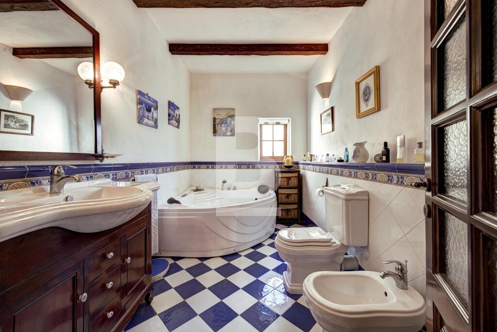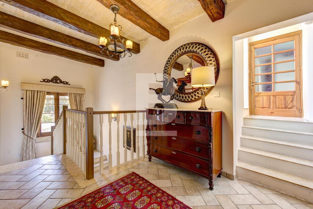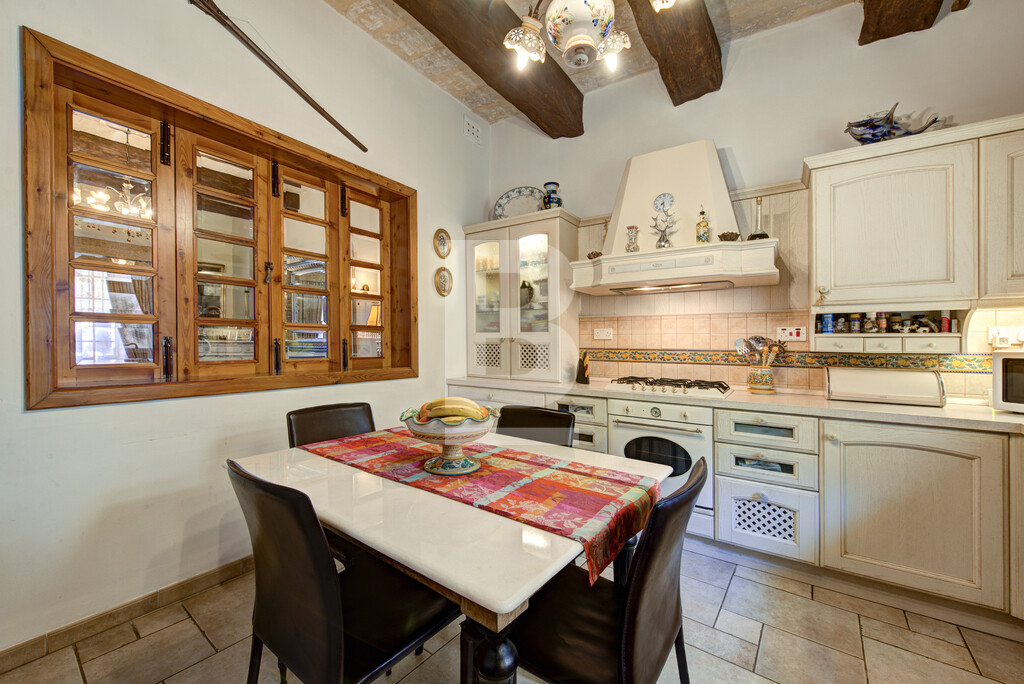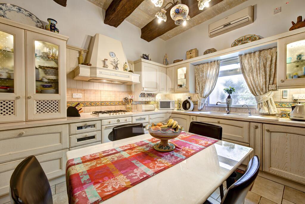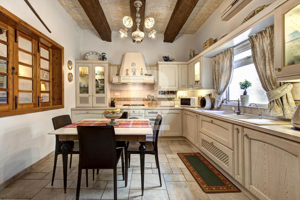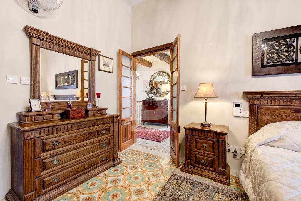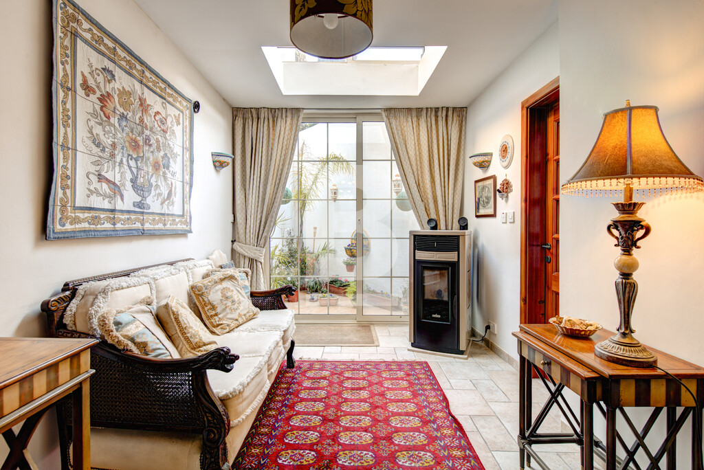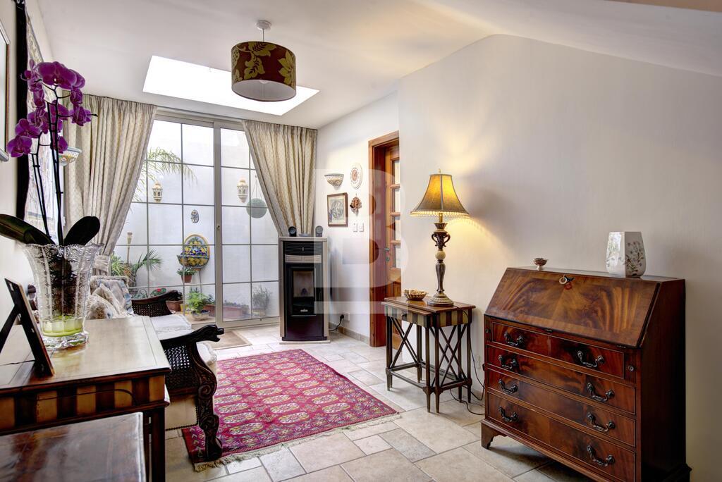 Corner double fronted town house in this sought after area, having an attractive layout in the form of a welcoming entrance hall, spacious living and dining room, large fitted kitchen, and a conservatory with skylight overlooking a back yard. Upstairs you will find 3 large bedrooms, en-suite, shower room and a nice sunny terrace. This property also has a washroom and large roof garden. Original features includes Xorok, wooden beams, and original patterned tiles. Property is finished to very high specifications and includes air-conditioning and solar water heating,