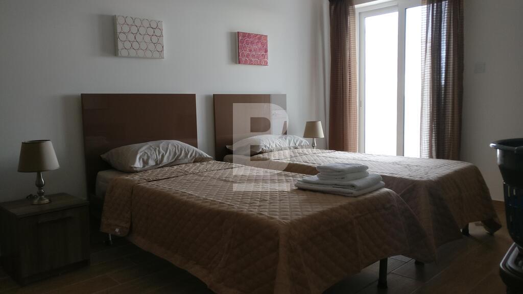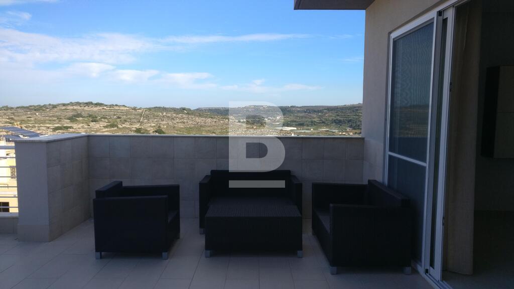 A luxury , modern fourth floor penthouse situated in a quite residential village of Manikata enjoying distant views and is within walking distance to Golden Sands beach. Property comprises open plan Kitchen, living & dining room equipped with all amenities and finished to the highest standard leading to a large terrace ideal for BBQ and entertaining family and friends. Two double bedrooms (main with en-suite), main bathroom, laundry room and good size back balcony. This property is airconditioned and includes TV, washing machine, lift and intercom.