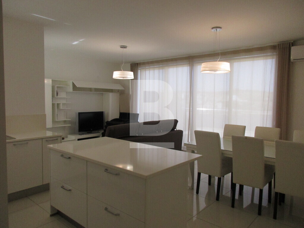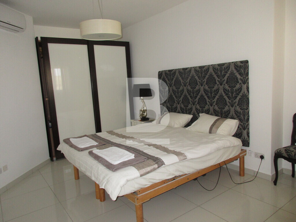 Modern, highly finished and fully furnished fifth floor apartment forming part of this smart block in the quite area of St Pauls bay sea front and within walking distance all amenities. Property comprises an entry hall, open plan (fully equipped) kitchen / living / dining area leading to a large terrace enjoying unobstructed sea views. Three bedrooms, (two of which are double and one single, main being en-suite) main bathroom and a small back balcony. Property is fully Air-conditioned and includes flat screen TV, washing machine, lift and intercom. Also included is lock up two car garage.