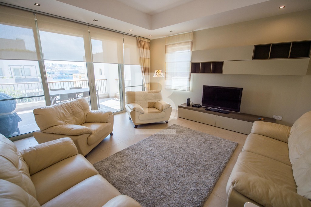 Luxuriously, designer finished and fully furnished apartment located in Malta as most prestigious development Tigne Point. Layout Comprises of a welcoming entrance hall leading to a very large open plan Kitchen/ Living and Dining area, then on to a good sized front terrace commanding partial sea and Valletta bastion views. The sleeping quarters consist of a master bedroom with walk in wardrobe and en suite shower also enjoying access to a good size balcony, a second bedroom with a side balcony, third bedroom currently used as kids room however the furniture can be changed to adapt to client a needs, main bathroom, laundry room, additional storage room and back balcony. Property is fully air-conditioned and includes TV, washing machine, dryer, dishwasher and much more. A 2 car lock up garage is included in the price. Energy Performance Certificate - Owner yet to provide.