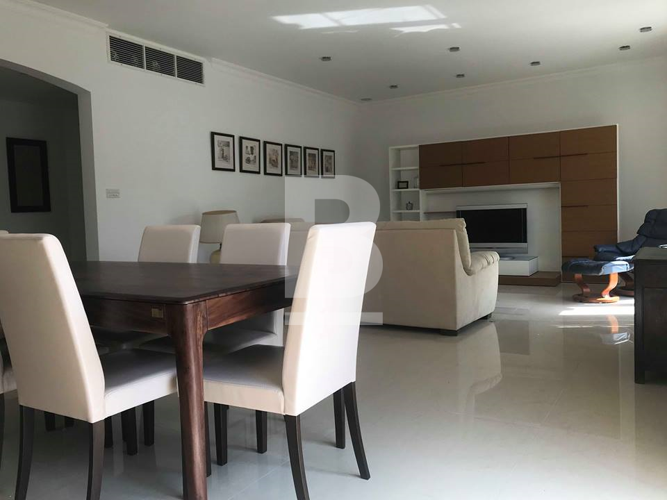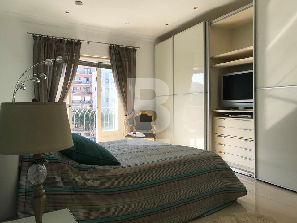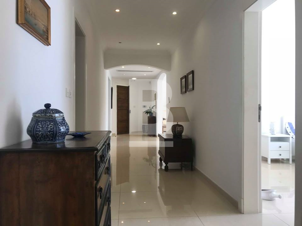 An exquisite, bright and airy seafront apartment situated on Balluta Bay consisting of open entrance hall, spacious sitting/dining room with two balconies enjoying both sea and country views, kitchen/breakfast room with pantry with a back balcony overlooking traditional Maltese town houses and mature gardens, a laundry room fitted with a washing machine and dryer, two double bedrooms (main with shower en-suite, a hidden TV and safe), a large Study that can be converted into a 3rd double bedroom. A separate walk-in closet. All bedrooms and study enjoy private balconies with partial sea views. A main bathroom and 1 car space included. Apartment comes fully fitted and furnished of the highest standards also includes telephone, LCD television, air-conditioning throughout, security features lift and intercom. An absolute must see property offering the best St Julian’s has to offer.