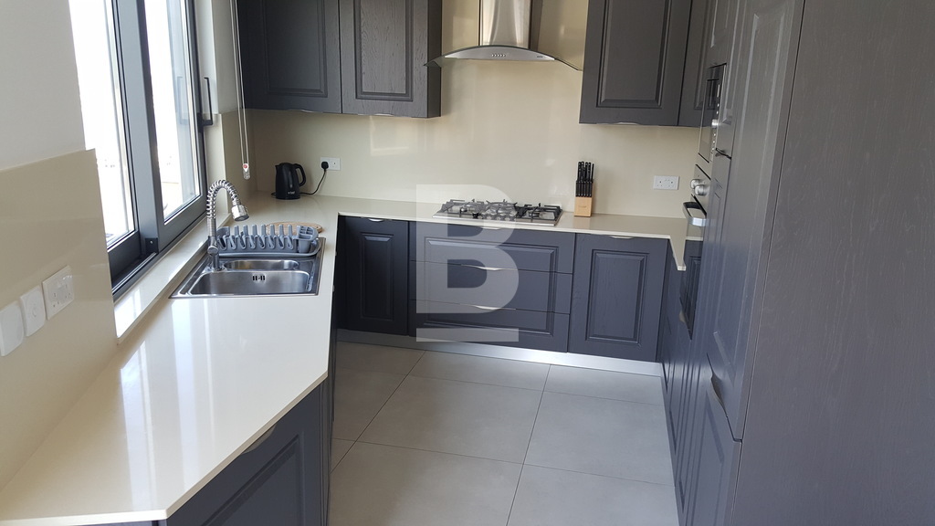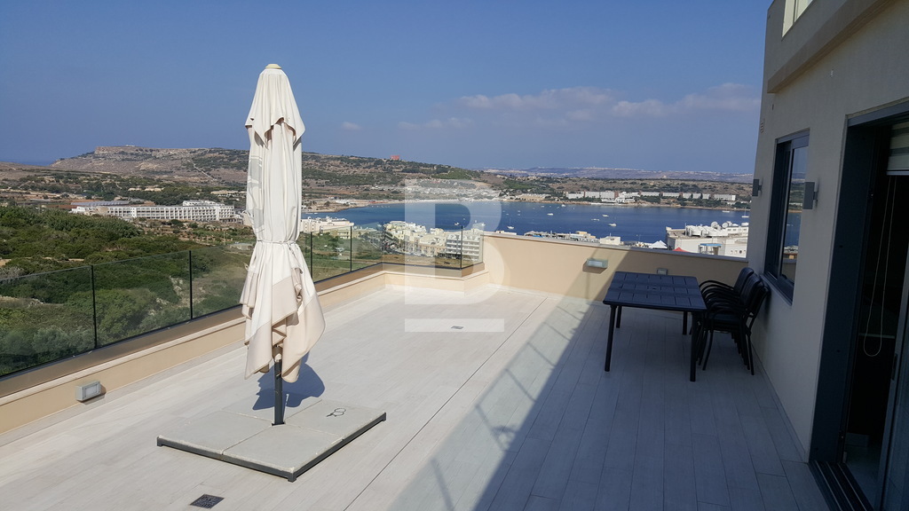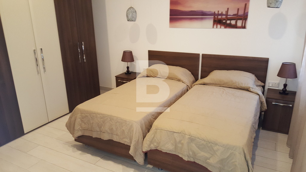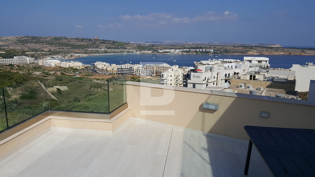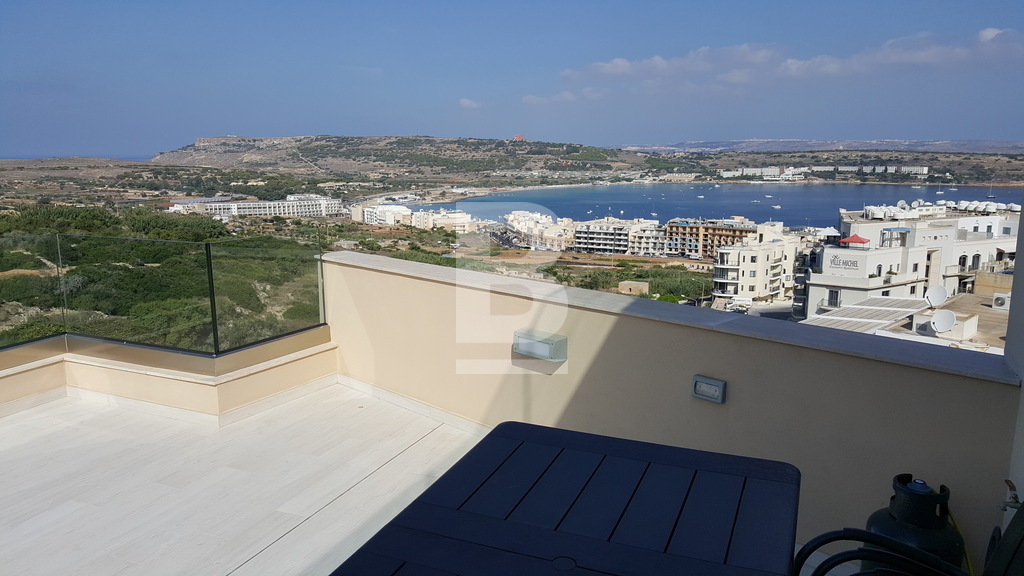 Fully finished apartment forming part of a smart corner block in Mellieha. situated in a quiet residential area in Mellieha within a very short walk to a bus route and close to Ghadira bay - measuring approximately 166Sqm. Property comprises an internal space of 117sqm, having a combined kitchen/living/dining area, leading onto a spacious terrace, enjoying country and sea views, two double bedrooms, main having en-suite facilities, main shower room, box room and two side balconies. Finishes include: tiles, coving, apertures, doors, bathrooms and air conditioning preparations.