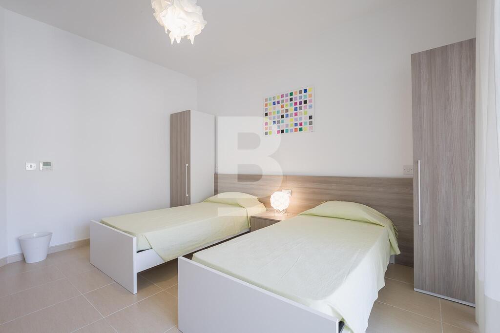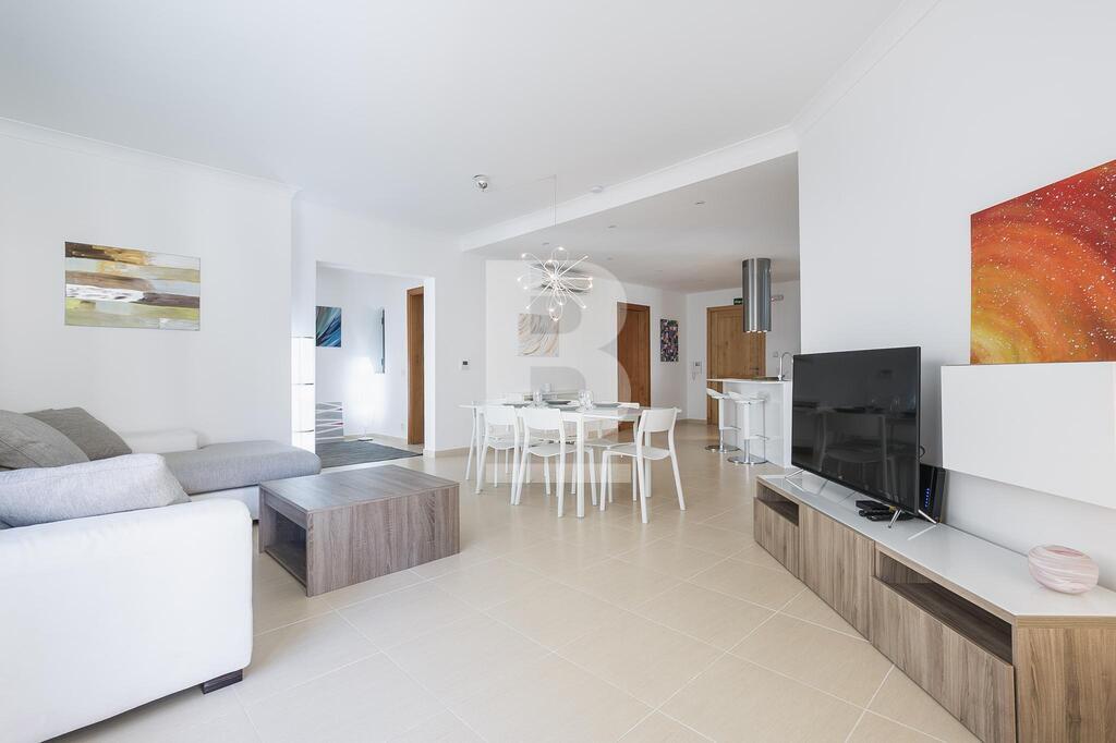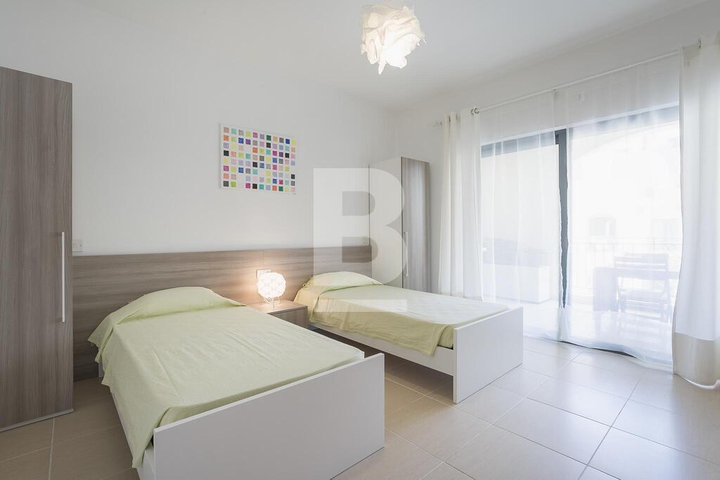 Discover a modern, bright, and airy apartment situated within an exclusive gated development boasting 'Special Designated Area' status. This elegant property features a communal swimming pool and lush landscaped gardens, perfect for relaxation and social enjoyment. The apartment itself offers a spacious open-plan kitchen, living, and dining area that seamlessly extends to a front veranda with views of the pool. It includes two generous double bedrooms, with the main bedroom benefitting from an en-suite bathroom, complemented by a main bathroom, a convenient box room, and a back balcony for added outdoor space. Fully equipped with air-conditioning and essential appliances, this home ensures comfort and convenience. Residents also enjoy the added benefit of a private lock-up garage and full access to the communal pool facilities.