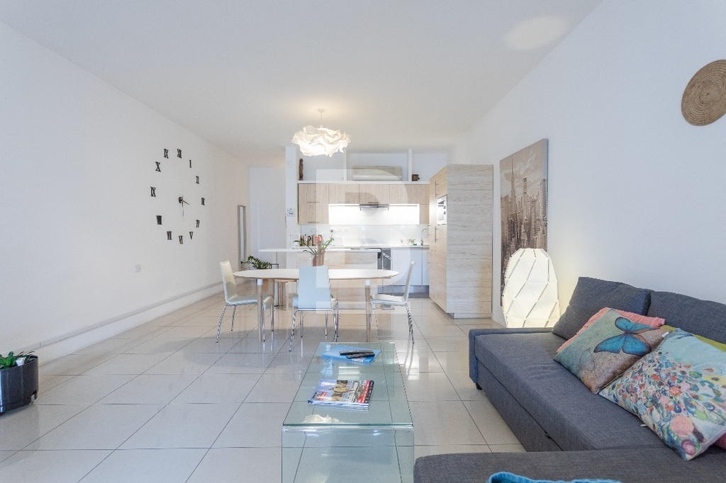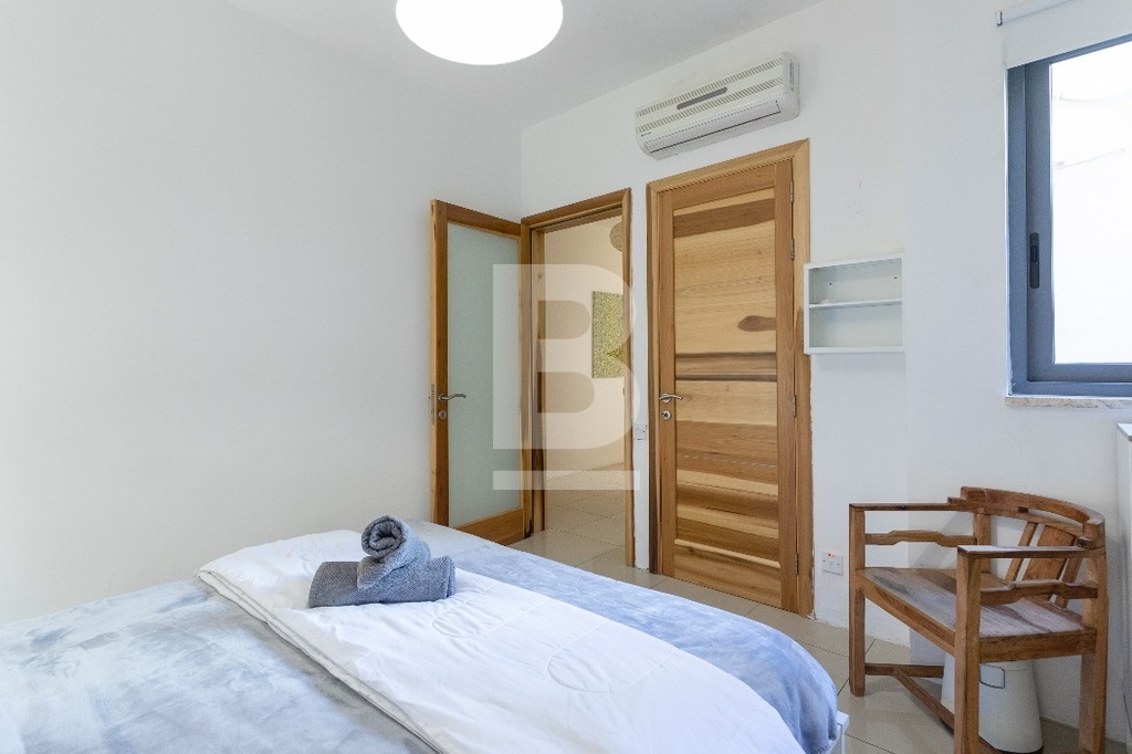 Elevated Ground Floor Maisonette – Prime Location. This stylish elevated ground floor maisonette offers modern furnishings and a generous layout of approximately 125 sqm. Set within a sought‑after residential neighborhood, the property enjoys close proximity to everyday amenities, public transport, cafés, and supermarkets. Upon entry, you are welcomed by a spacious open‑plan kitchen, living, and dining area leading to two well sized bedrooms and two bathrooms, including one en‑suite. The home is fully air‑conditioned, features a fully equipped kitchen, and comes furnished throughout. An optional dedicated car space is also available. Perfectly positioned, the apartment is just a short 5–15 minute walk from St George’s Bay, Bay Street, Spinola Bay, and Paceville. An excellent investment and ideal buy‑to‑let opportunity.