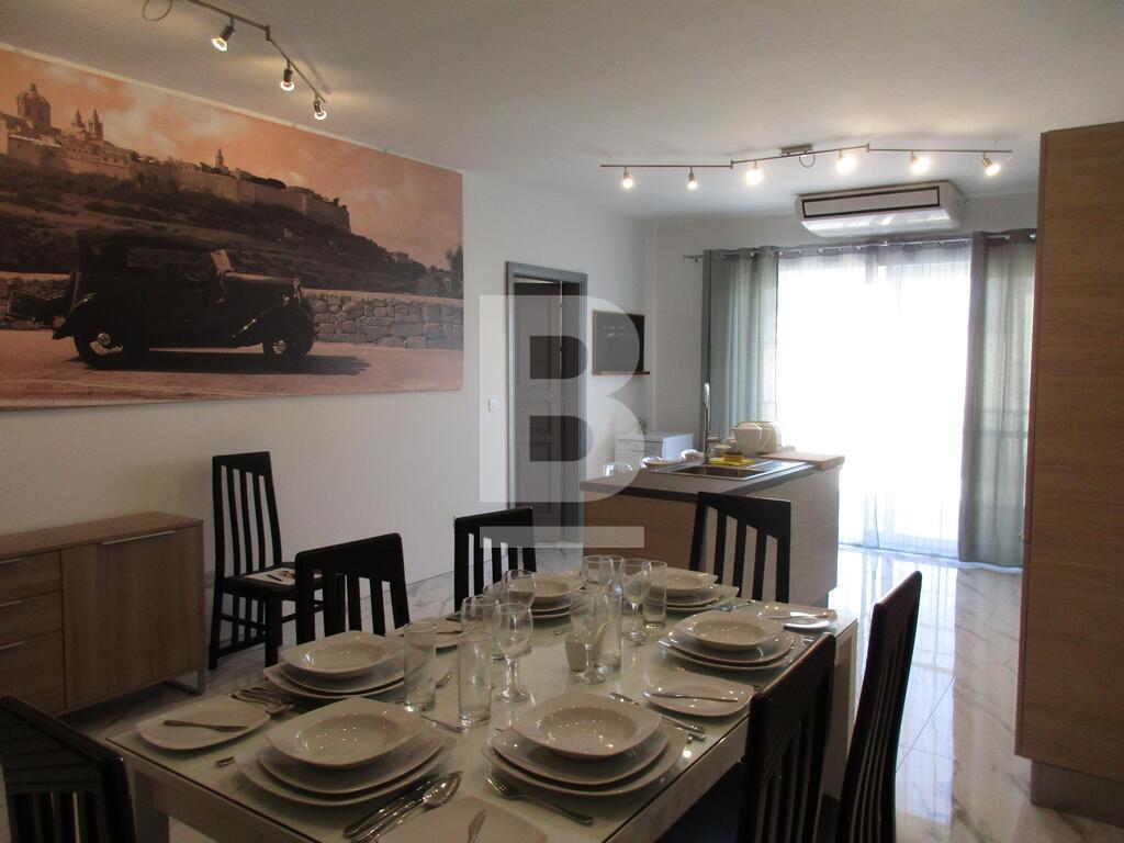 Modern two bedroom highly finished and fully furnished fourth floor apartment located in a nice residential area of Mosta close to all amenities. Property comprises an open plan fully equipped kitchen /living /dining room area leading to a good size front balcony, two double bedrooms, main with en-suite shower room, main bathroom and a side balcony . Property include energy efficient A/C units, flat screen TV’s, dishwasher and washing machine and much more. Viewing is highly recommended.