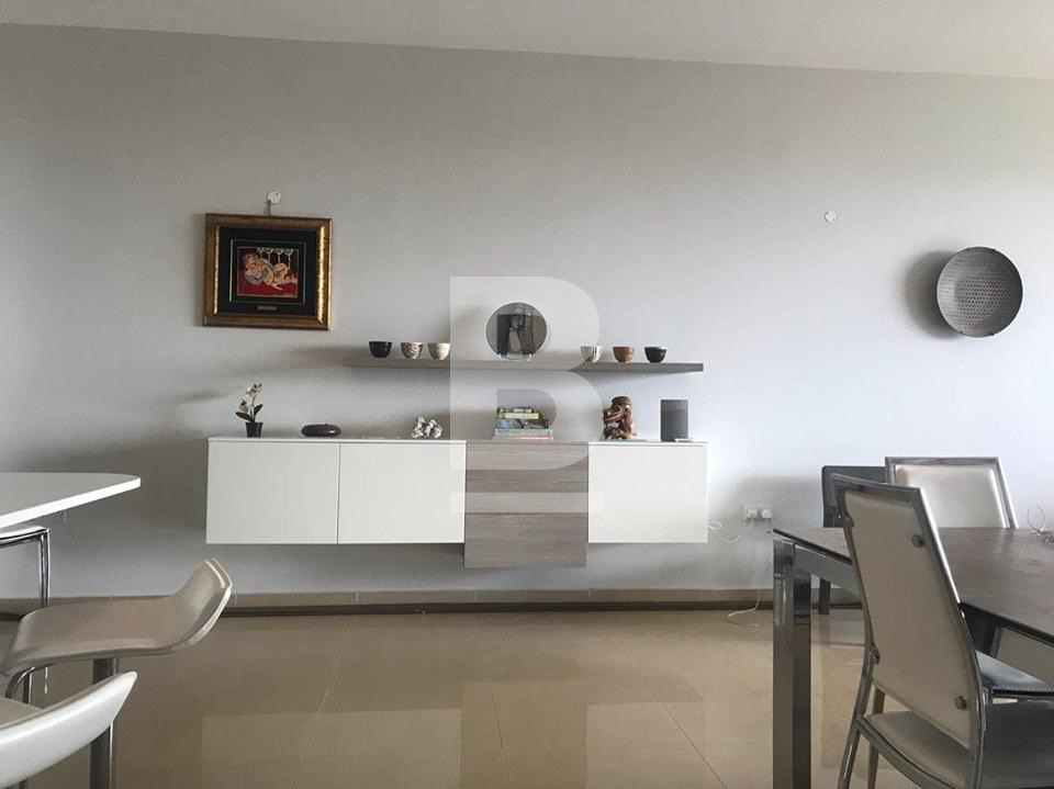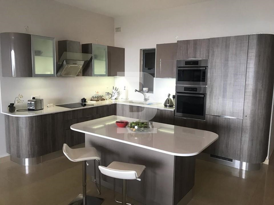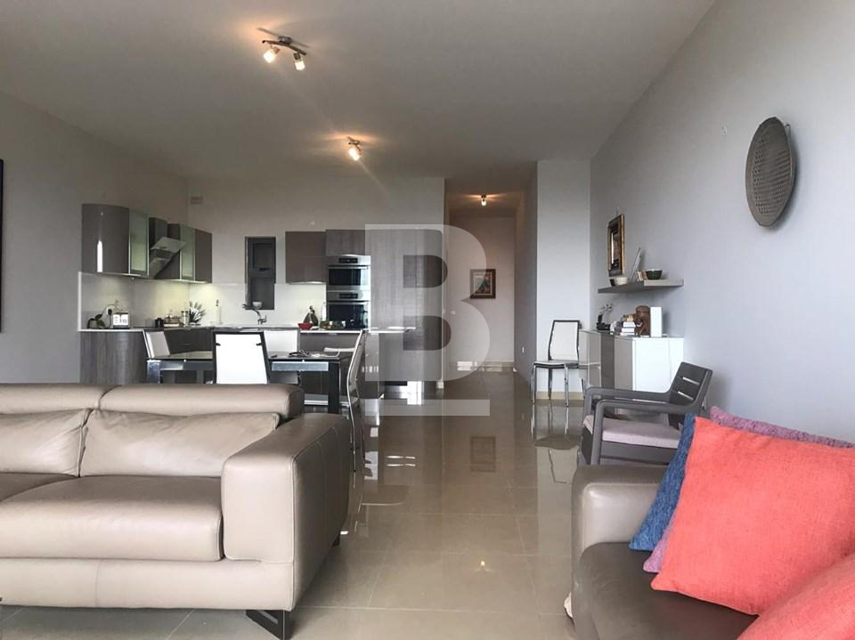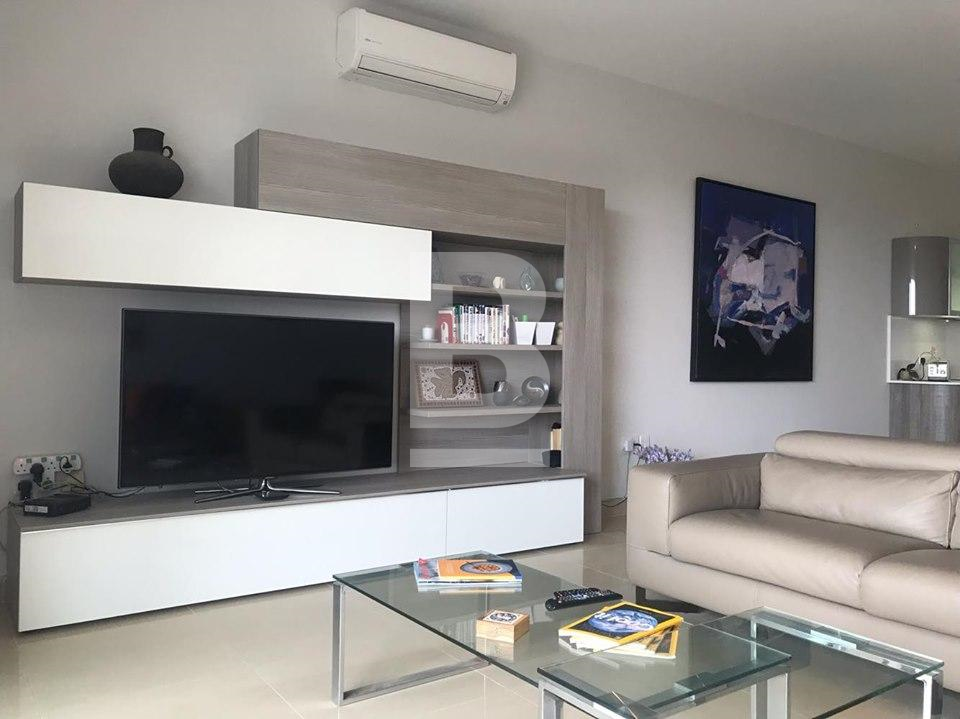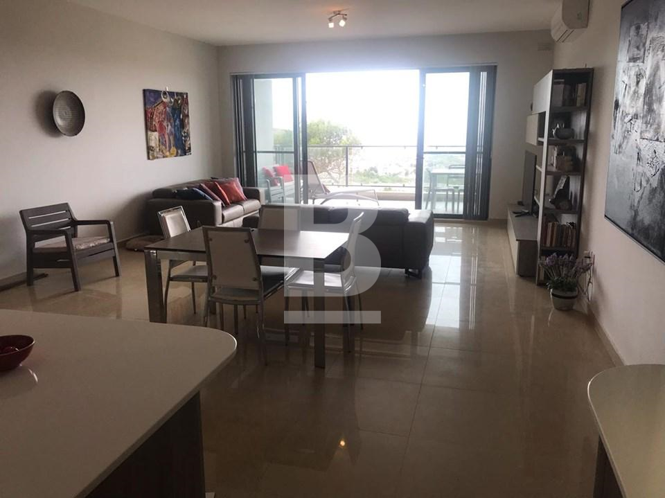 Highly finished and fully furnished first floor apartment in a small well maintained block situated on a hilltop of Mellieha village. This property measuring a comfortable 170 sqm enjoys an extremely quiet residential setting with exceptional cliff, country and two coast sea views. Property comprises a bright open plan kitchen/ living / dining area leading to a private large terrace, three double bedrooms, main guest bathroom and en-suite in the master bedroom. This property is equipped with air-conditioning units and includes TV, washing machine lift and much more. This is an ideal home with one of a kind views on the Island, for tenants looking for comfort and a quite setting.