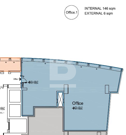 A commercial office measuring approximately 152 square meters forming part of this new exclusive lifestyle development enjoying underground parking, landscaped piazza and all round security situated close to Portomaso. Being a destination in itself comprising shops, cafes, offices, supermarket, offices and luxury residences, the last remaining spaces are available. All external finishes provided but offered internally in shell form state. The office includes external space. Additional space on the same floor of a total of 534 square metres and on additional floors may be leased for a total of 1616 square metres.