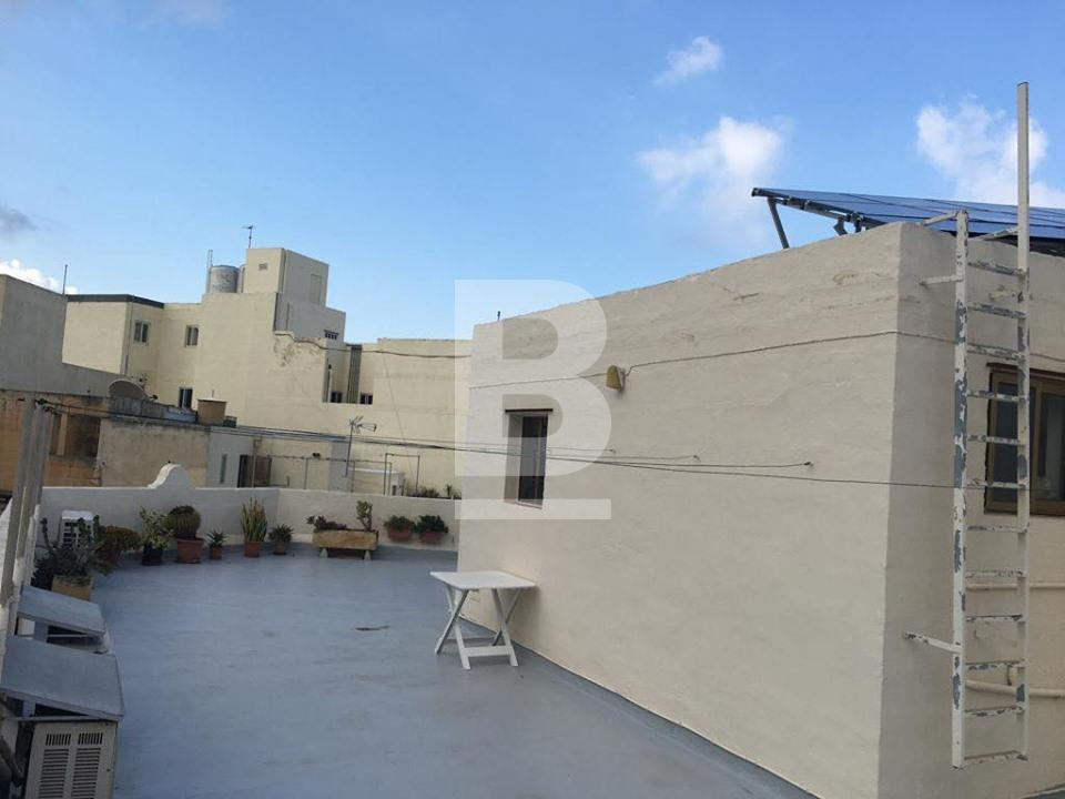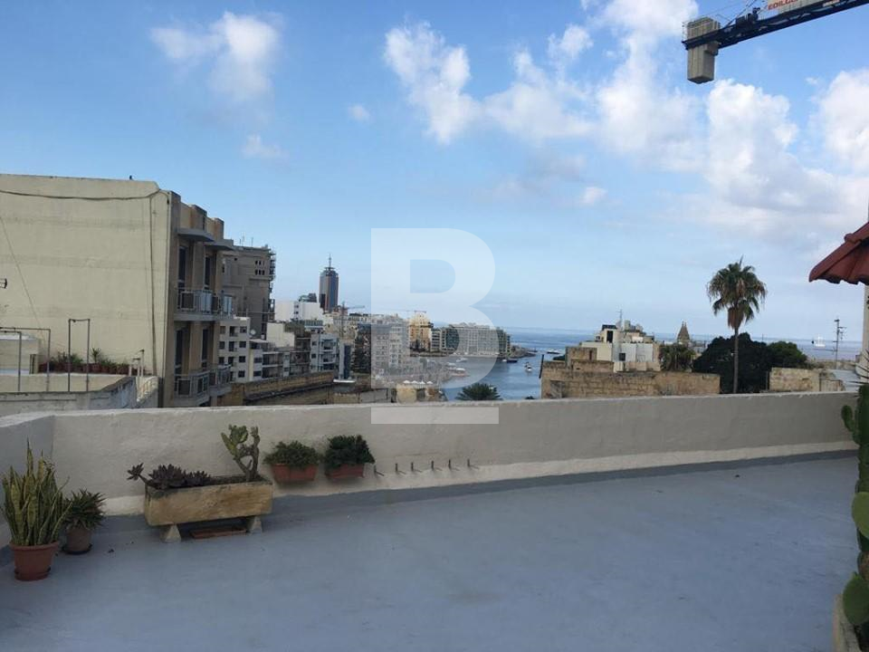 A corner house being offered for commercial use and ideal for an office on 3 floors or as a split residence / office with up to 5 bedrooms. With two possible entrances at street level, situated just 100 metres from Balluta bay, enjoying some passing trade during the day. Property covers an internal area of circa 250 square meters and is currently used as a residence. Property is being offered either unfurnished or furnished pending clients commercial requirements. Includes a fully fitted kitchen, an open plan living / dining room, 2 bathrooms, 1 WC, and 1 en-suite. As an office this can be ideal for a small business offering space for a ground floor reception area / waiting room with, and another 7 separate rooms including a large open air roof terrace of 100 sqm with partial sea views and a L-shape balcony on the 1st floor. This is ideal for either independent private office, small language school, kindergarten, doctors clinic, or alternatively as residential commercial venture for a sub-letting and short let holidays.