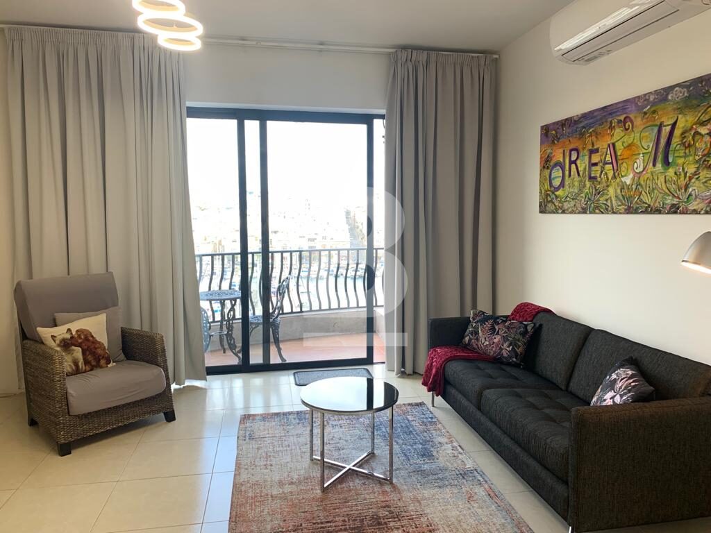 Bright and modern, fifth floor apartment situated in Pieta seafront enjoying breath-taking views from its balcony of the beautiful Msida church and Yacht Marina. Property comprises spacious open plan kitchen / living / dining area leading to a front balcony, three double bedrooms ( main with en-suite facilities ) , main bathroom and good size back balcony. This property is fully air-conditioned and includes TV, washing machine, microwave, lift and intercom. One car garage available at additional cost.