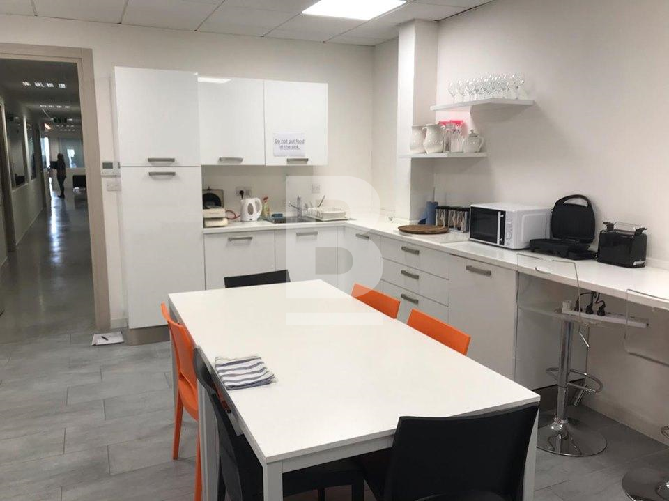 Fully serviced 2nd floor private office of 19 m2 (accommodates approx. 1-4 desks). Includes electricity, water, cleaning and superfast Wi-Fi with no service, maintenance or management charges. All tenants have use of the kitchen, and fantastic cafeteria styled lounge with private rentable booths, and desks. This serviced office, situated in Mosta, offers a modern space, newly renovated and offers highly flexible office solutions, ideal for small to medium teams. With amentities and services included in the pricing.