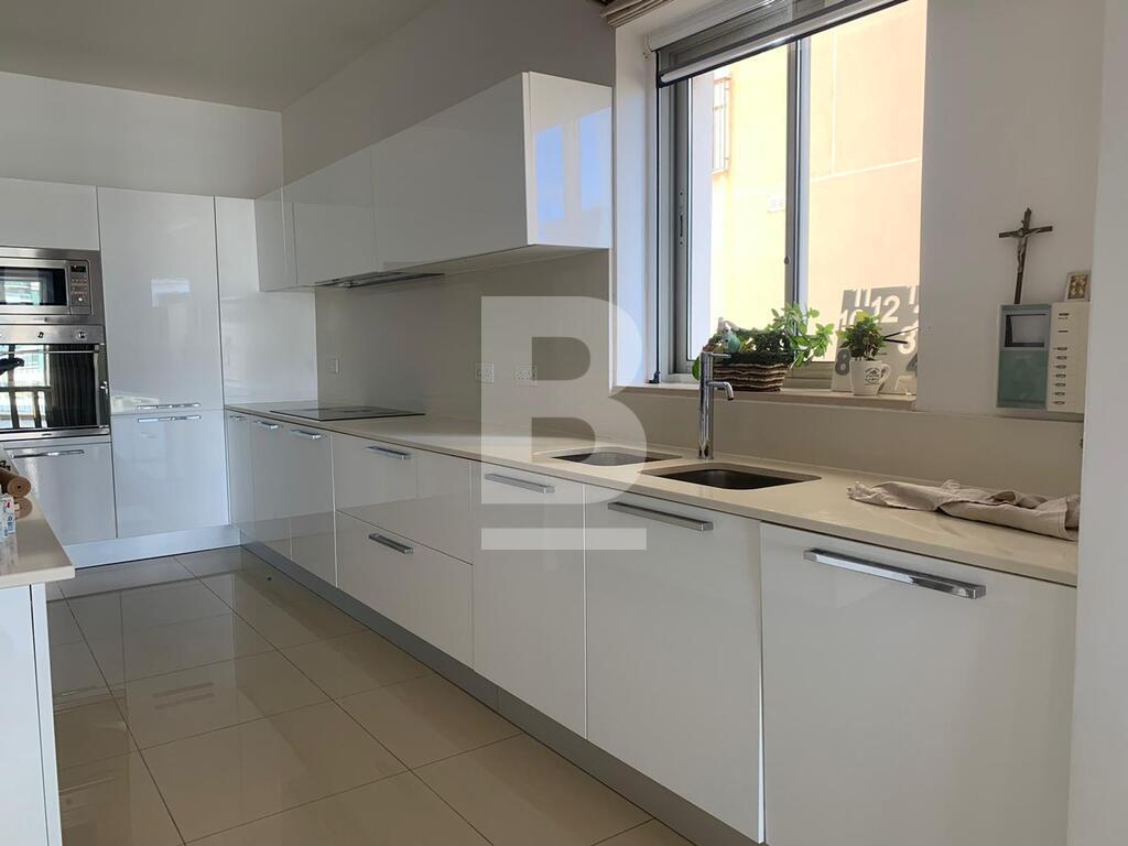 Modern 4th floor apartment, situated in one of Malta’s most popular shopping hubs within the Tigne Point Lifestyle Development enjoying leisure activities, retail outlets, cafes and restaurants. One of the most salient aspects of the condiminium, offering extensive open public spaces, foreshore walkways and a resident's pool. This apartment measures over 200 sqm. This property layout consists of a spacious sitting / dining area, leading to a front veranda, a separate fully equipped kitchen, two double bedrooms, main with en-suite facilities and a walk in wardrobe, a single bedroom, guest toilet, main bathroom, laundry room / store, drying area and a one car garage with space for storage optional. Extras include: lift, TV, washing machine, dishwasher and one car garage.