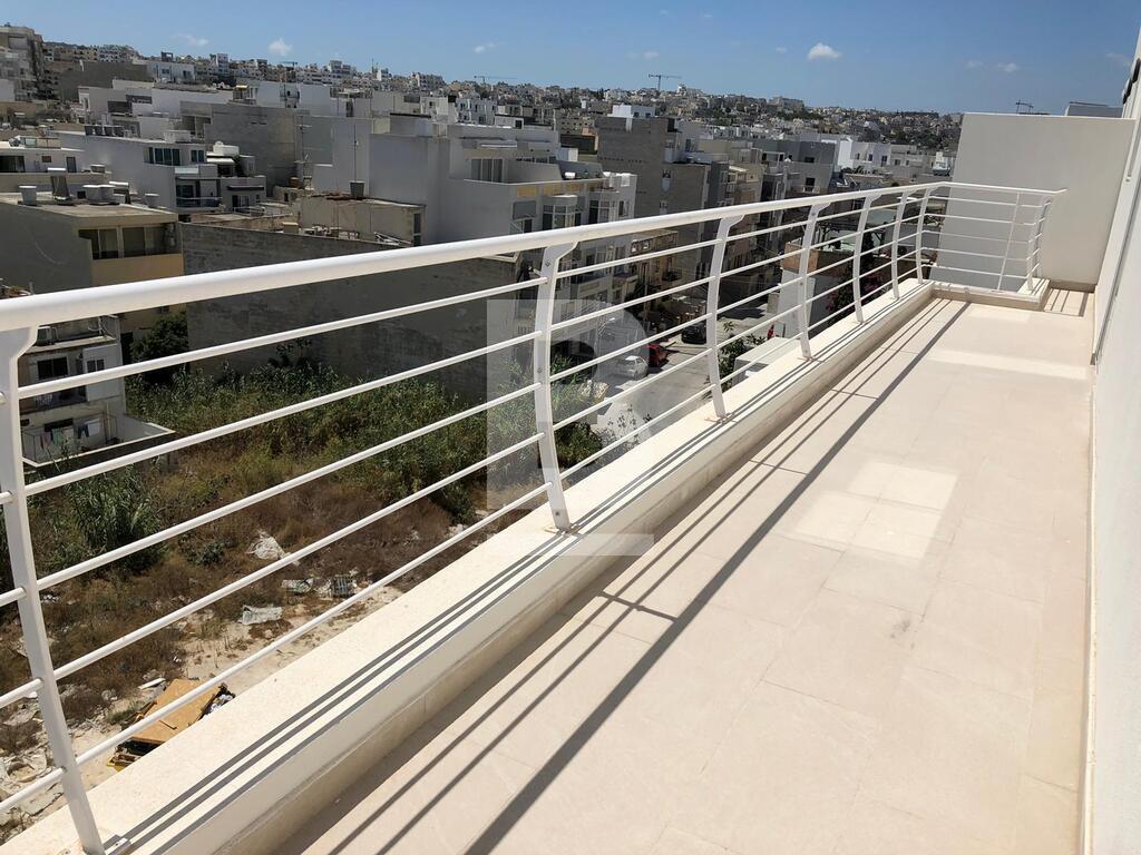 Highly finished fifth floor PENTHOUSE located in a very residential part of Swieqi and close to all amenities. The property consists of two double bedrooms (main with shower en suite), separate bathroom, box room, back balcony and open plan kitchen / sitting / dining room leading onto a spacious terrace with outdoor furniture ideal for entertaining. The apartment is equipped with washing machine, dishwasher and air-conditioning is fitted in all bedrooms. One car lock up garage is also included.