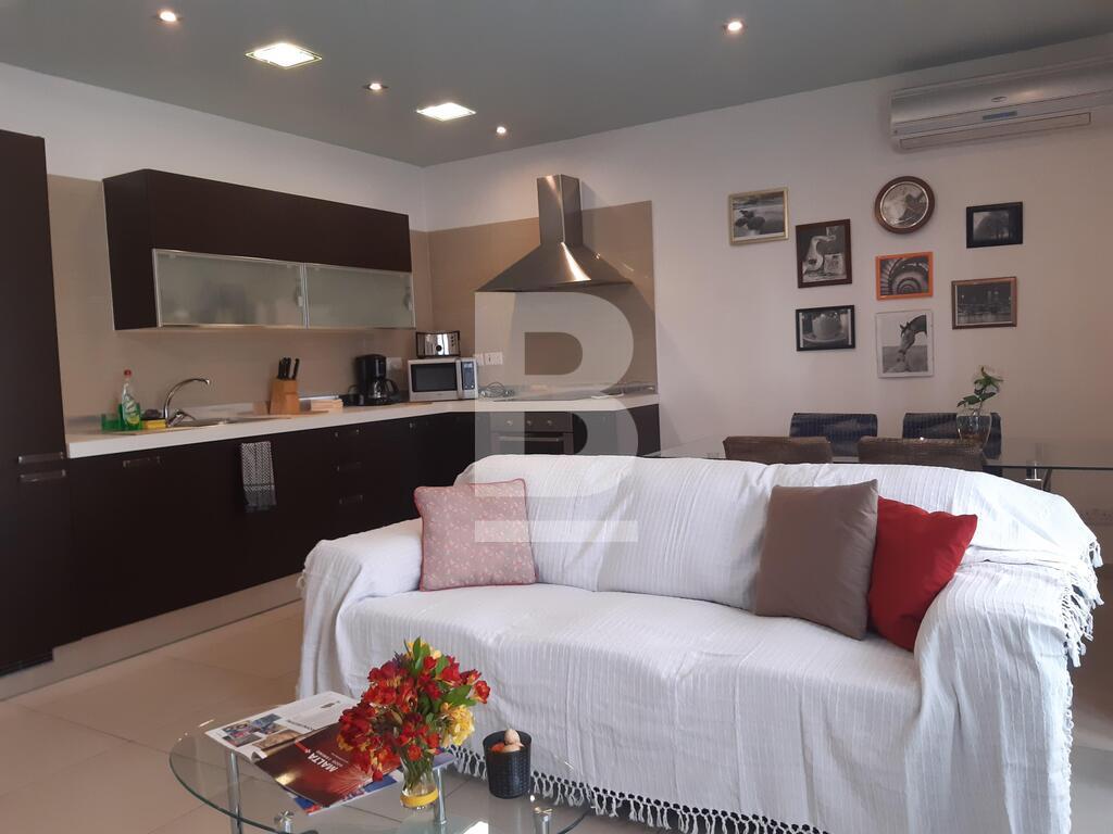 Superbly located a stone's throw away from Balluta Bay, Sliema and St. Julian's is this lovely spacious apartment, situated within walking distance to all necessary amenities, including the seaside! The property welcomes you into a bright open plan fully-equipped kitchen/ living/ dining area with a generously-sized balcony having space to sit and relax. A large main bedroom and main bathroom complement this property, and an optional garage is available for rent at just €75 per month!