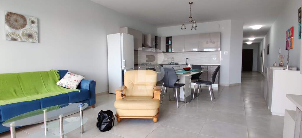 A second floor well finished, modern apartment serviced with a lift, situated in a quiet residential area of Mellieha, close to all amenities and public transport. Comprising an open plan kitchen/living/dining with a terrace boasting amazing views over Santa Maria estate and distant sea views, main bathroom with a bath and two double bedrooms, the master bedroom has an en-suite facilities. Being offered fully furnished , air-conditioned and equipped with branded appliances.