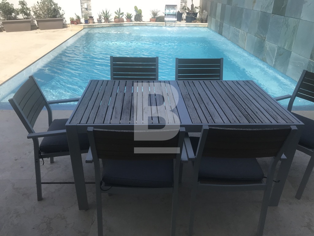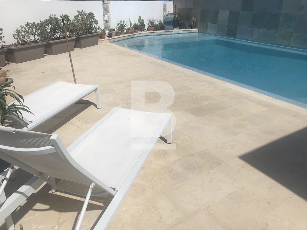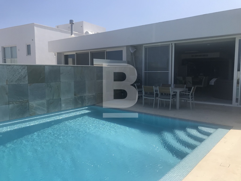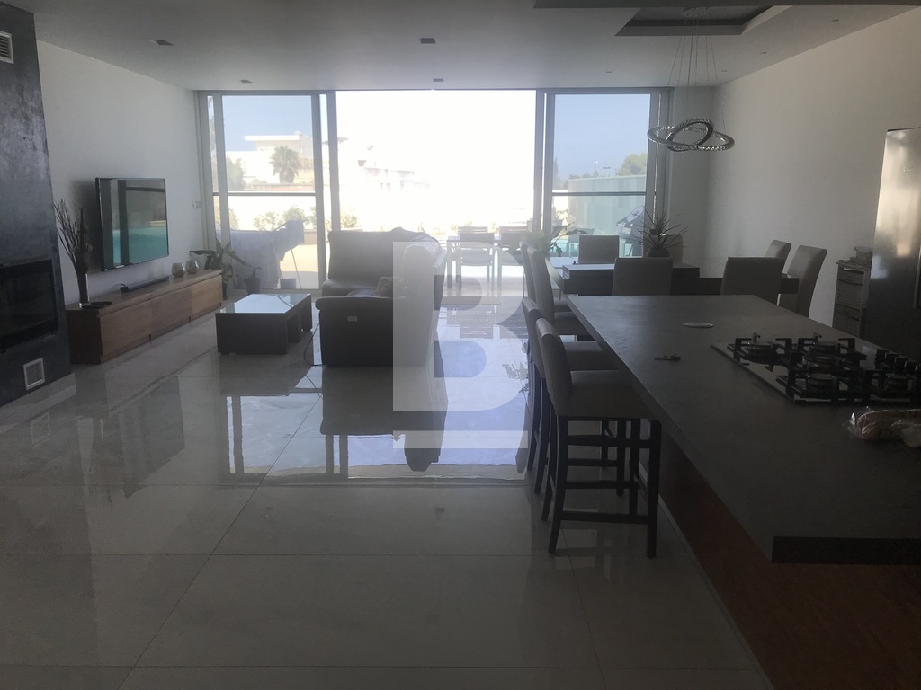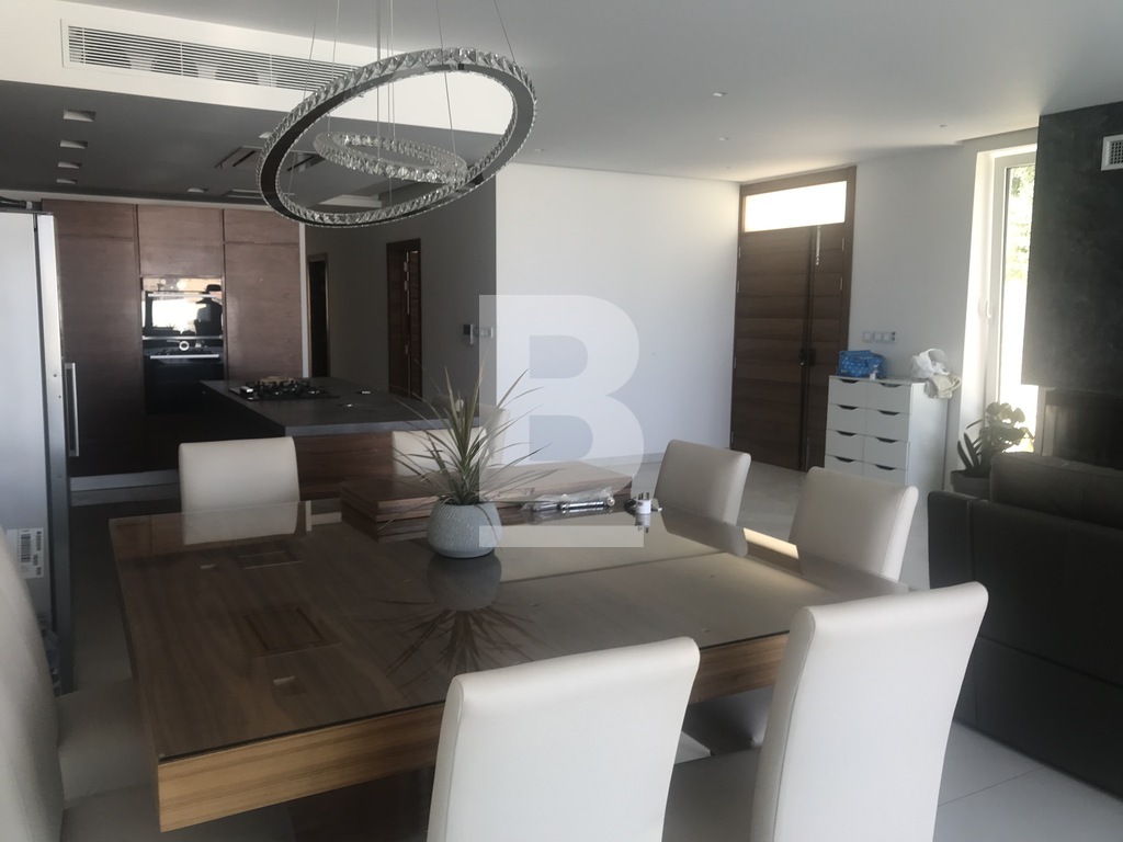 A 2018 built highly finished and furnished semi - detached villa, situated in this much sought-after Villa area. Property consists of an entrance into an open plan, bright and spacious living / kitchen/ dining area with a fireplace, leading to a large surrounding terrace having a good sized pool with an in-built jacuzzi system, 3 double bedrooms, main with en-suite shower room and a walk in wardrobe, main bathroom with bathtub and a laundry room. On ground level having its own entrance one can find an interconnected by stairs to main house, a flatlet with another spacious open plan fully equipped kitchen/ living/ dining and 2 spacious double bedroom, main with shower en suite shower and a main bathroom, This beautiful property comes with an interconnecting 4 car garage having also a shower room and Gym. Property is fully equipped with air-conditioning units and includes washing machine, dishwasher and a dryer. Pet Friendly - Viewing is highly recommended.