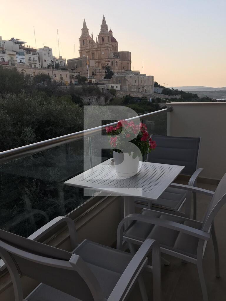 A brand new ground floor, 3 bedroom apartment, situated in the heart of the village of Mellieha, with direct access to all amenities and public transport links, offering amazing views of the Parish church of Mellieha and the green valley. Comprising a very spacious open plan kitchen/living/dining with a front balcony boasting stunning views, a corridor leading to a box/washing room, main bathroom, 2 double bedroom and a master bedroom with an en-suite facilities. This lovely property is being offered fully furnished, air-conditioned and fully equipped with all necessary appliances.