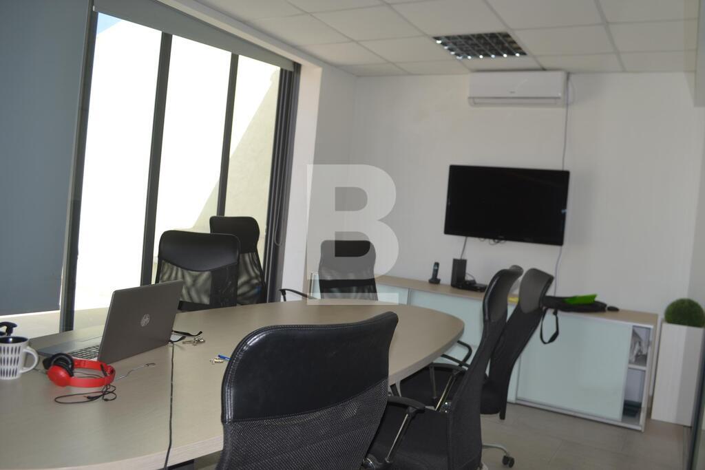 A penthouse office in finished and furnished state measuring circa 173sqm including a back and front terrace in Gzira. Part of a modern office block, each floor comprises one office with this office at penthouse level comprising entrance area, a large open plan area, two separate rooms and kitchenette and a large boardroom with large rectangular terrace with views. A box room and bathroom compliment the office. The premises are located just off the regional road.