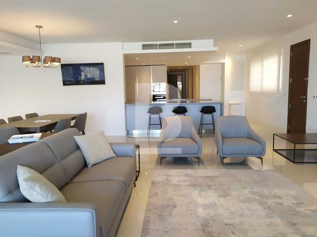 Highly finished fully furnished APARTMENT in one of the most luxurious developments on the island - Portomaso Laguna. This property enjoys the exclusive use of a Lagoon and consists of an open plan kitchen, living and dining area leading out onto a large front terrace, two double bedrooms both having en-suites, seperate guest toilet and a laundry room. Items included : air-conditioning throughout, washing machine, dryer, microwave, dishwasher, TV, alarm system and car space.