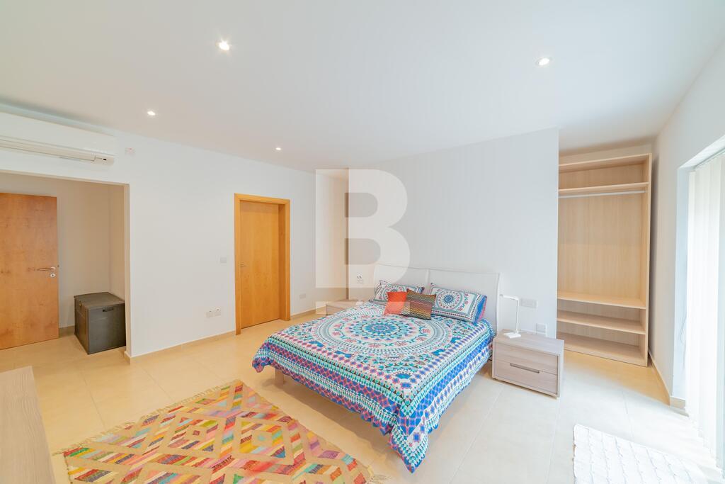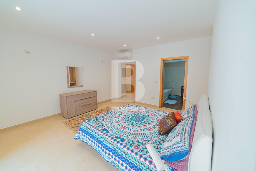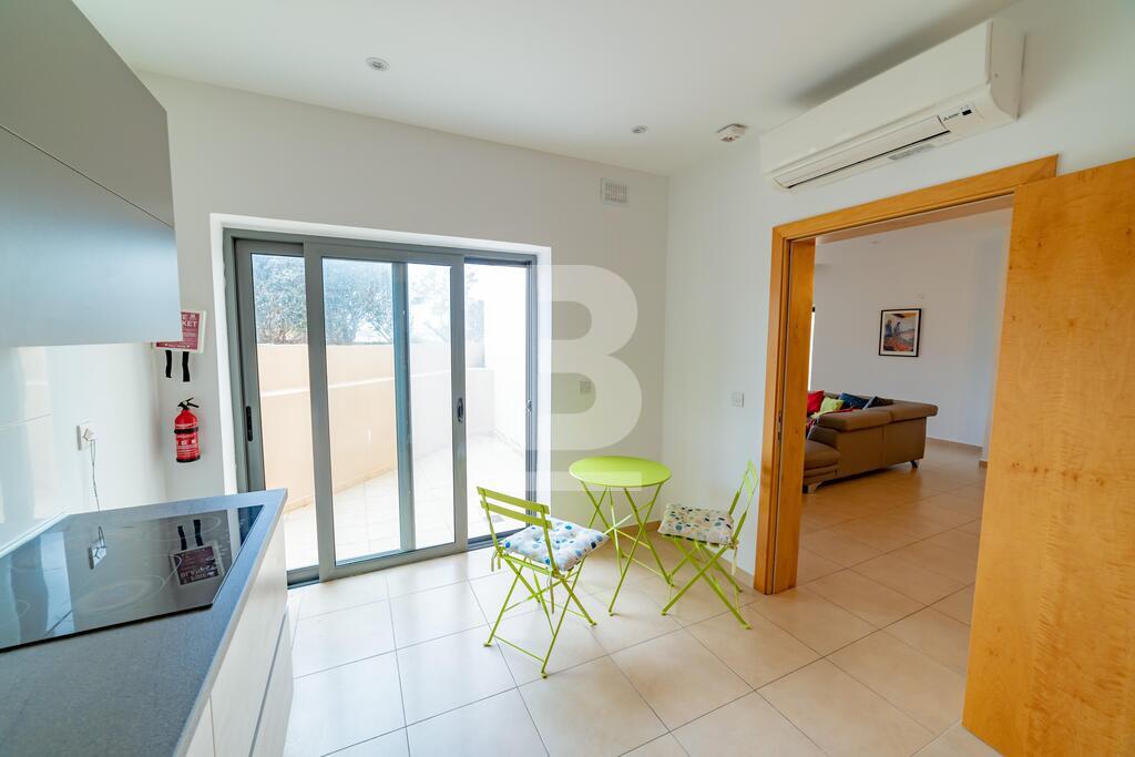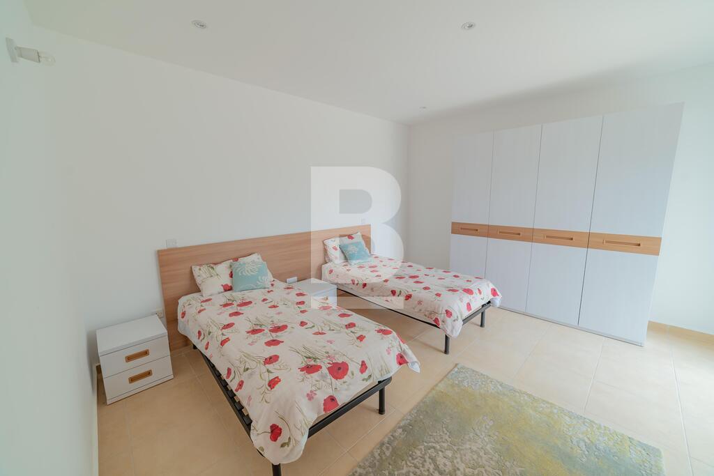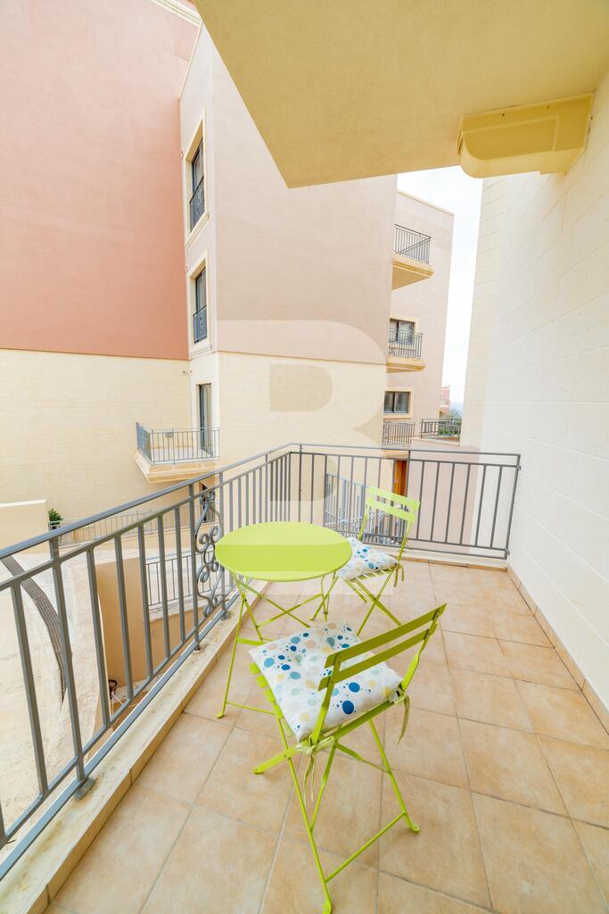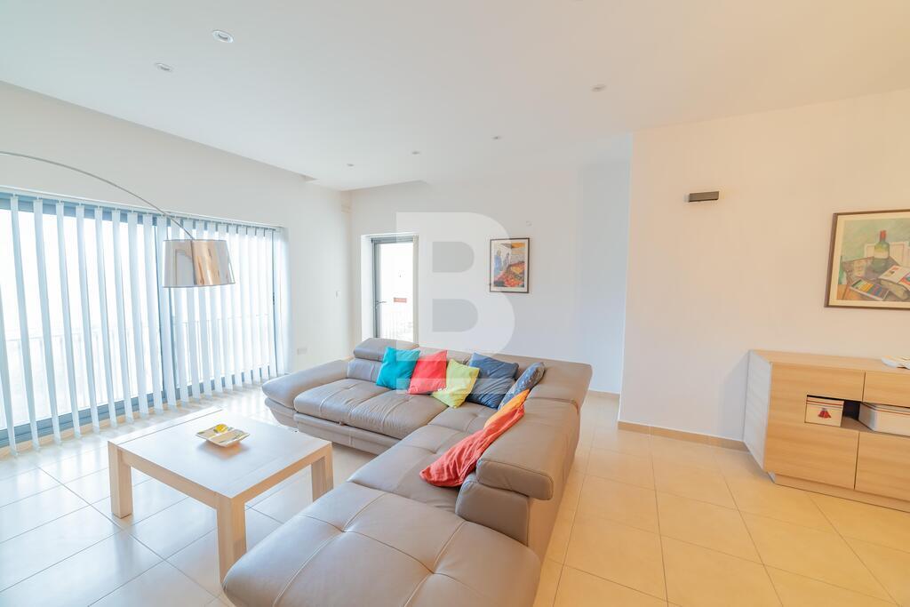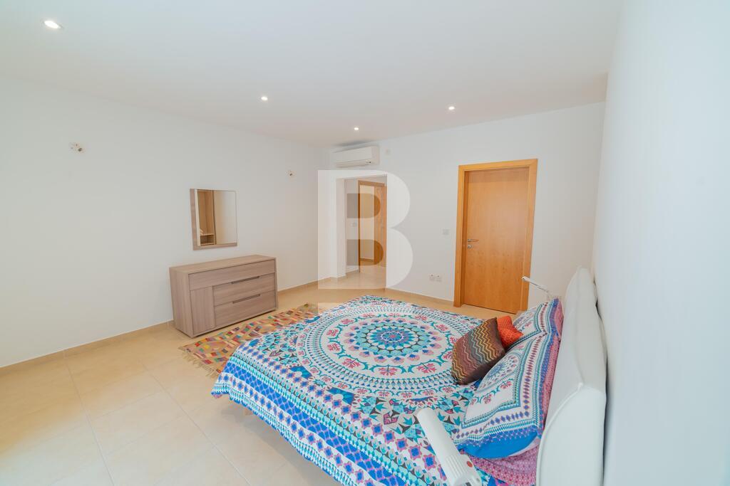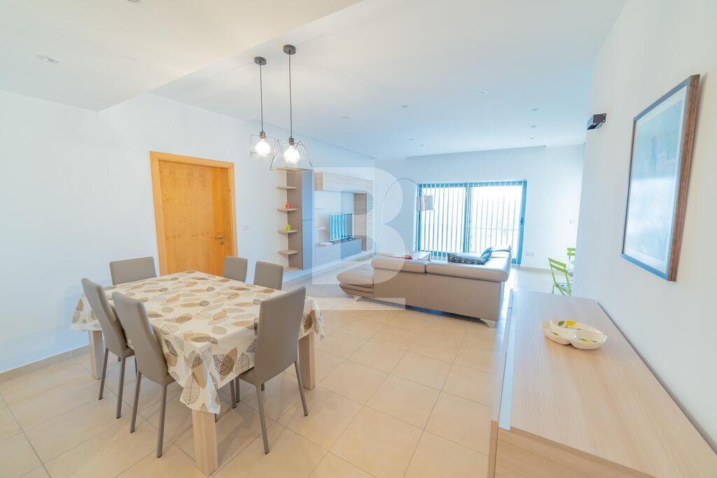 Lovely seafront apartment, with front terrace enjoying panoramic sea views and forming part of the prestigious Tas-Sellum Residence, attractively furnished and offering use of the communal swimming pool. Property comprises a separate kitchen area, spacious living/dining area, one double bedroom (with en-suite facilities), one twin bedroom, main bathroom and back yard. Property is equipped with air-conditioning throughout, flat screen TV, dishwasher, washing machine, microwave and includes 1 lock up garage.