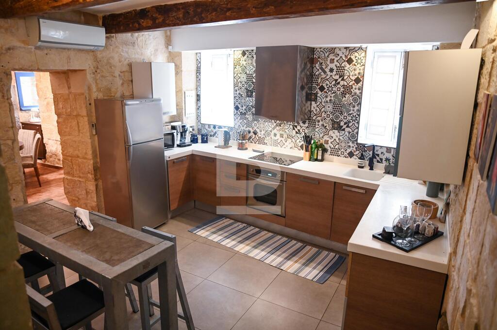 400 years old house, tastefully converted and restored. Located in the historic heart of Birgu, very much sought-after Collachio Area. This beautiful home offers a double bedroom, a guest bedroom/office, a walk in wardrobe (which can be converted into a 3rd bedroom), 1 bathroom with walk in shower, a washroom, cellar including a spare toilet, roof and back terrace, an open plan living and dining room, fully equipped kitchen with dishwasher, coffee machine, orange juicer and microwave, washing machine and tumble dryer. This property is fully air conditioned and pet friendly. A truly unique space for those looking to experience a quiet neighborhood in a historical city.