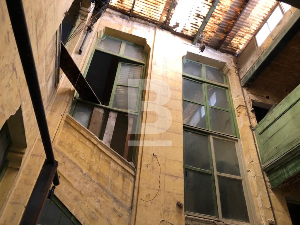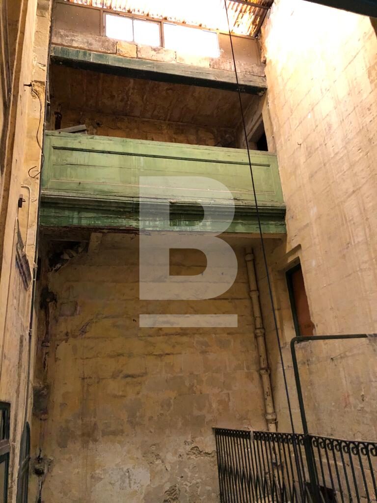 An imposing historical Palazzo situated in a highly prominent position in one of Valletta's two main pedestrianised streets is being offered for sale. Dating back a few hundred years, the property is laid over four floors including the roof and measures circa 450sqm internally. Having a central courtyard and high ceilings, the building is structurally sound though in need of renovation. One may obtain building permission to erect two additional floors increasing the internal area by an additional estimated 300sqm plus a large front terrace with panoramic views of the grand harbour. The property layout consists of several large and smaller rooms with a sala nobile on the second floor complete with large traditional Maltese timber balcony on a double fronted facade. The palazzo would make a magnificent home, boutique hotel, office, business or retail centre. A small basement forms part of the property with natural ventilation from a street vent.