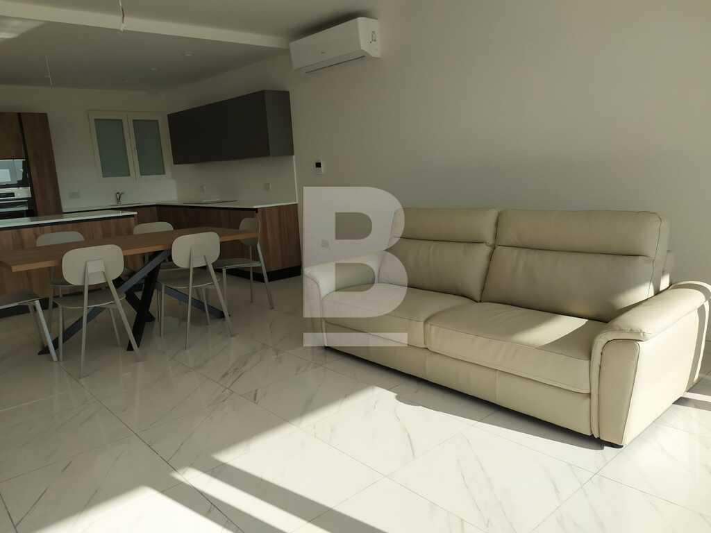 Brand New first floor apartment located in a quiet area of Mosta, yet close to all shops and amenities. Facing Mosta's valley, gives this property a tranquil feel, whilst keeping it away from the city's hectic lifestye. Property comprises a spacious open-plan kitchen / living / dining area leading to a good size balcony overlooking open country views, 3 double bedrooms (one of which with en-suite shower room), main bathroom, laundry room, and a front balcony. This property is fully air-conditioned and includes TV and washing machine and much more. A must see!