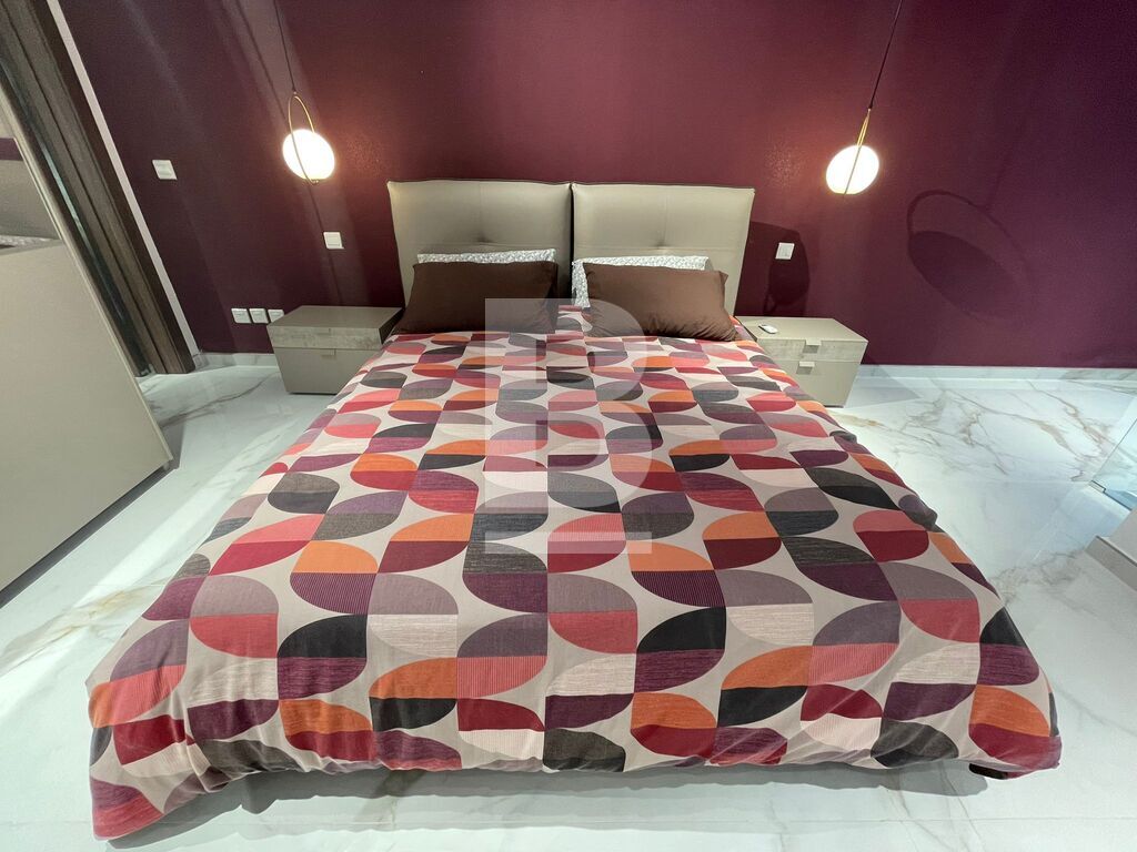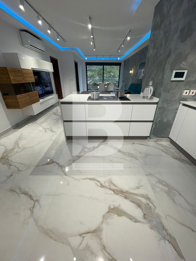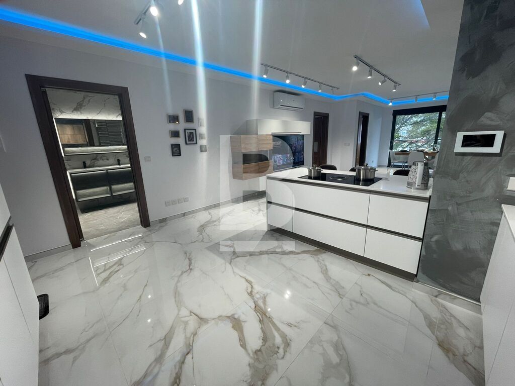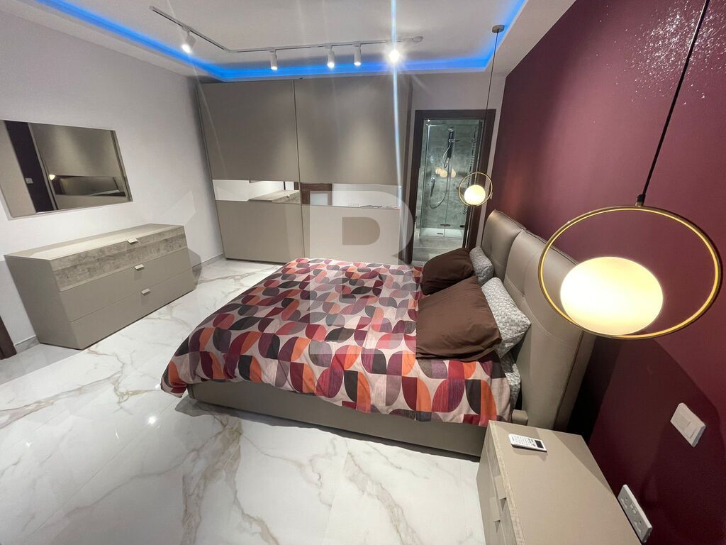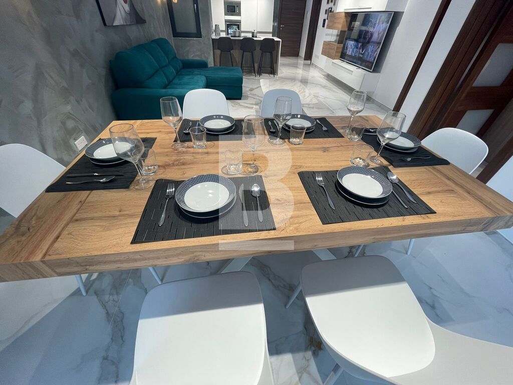 Luxuriously finished and furnished, fully air-conditioned APARTMENT in Attard, comprising a large open plan kitchen, living and dining area with a front spacious balcony overlooking a garden, two double bedrooms - master with an en-suite shower and balcony and main walk-in spa effect shower. This highly finished kitchen has a smart touch oven and aspiration induction hob.