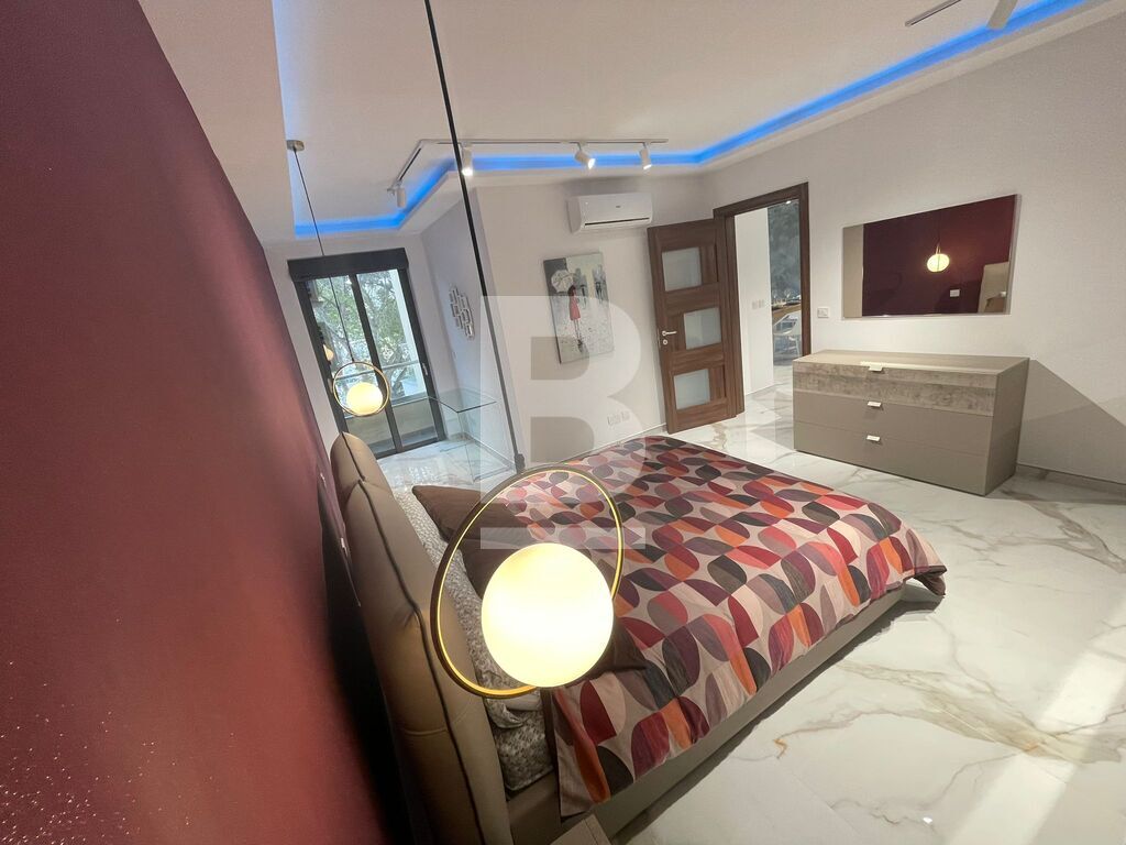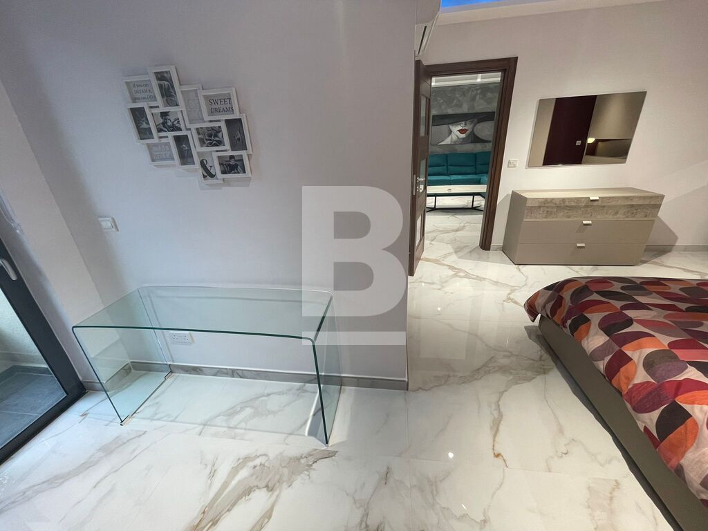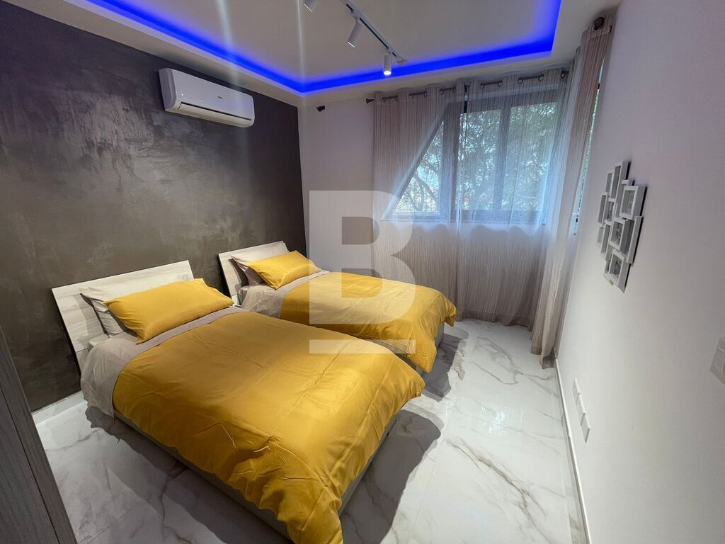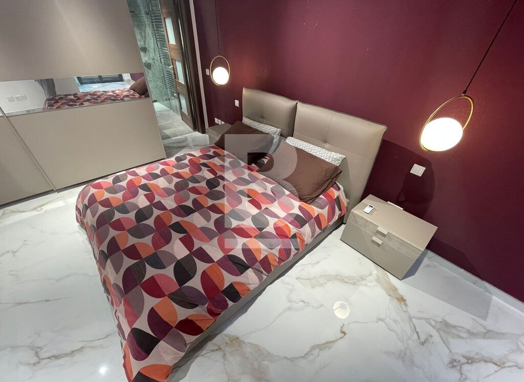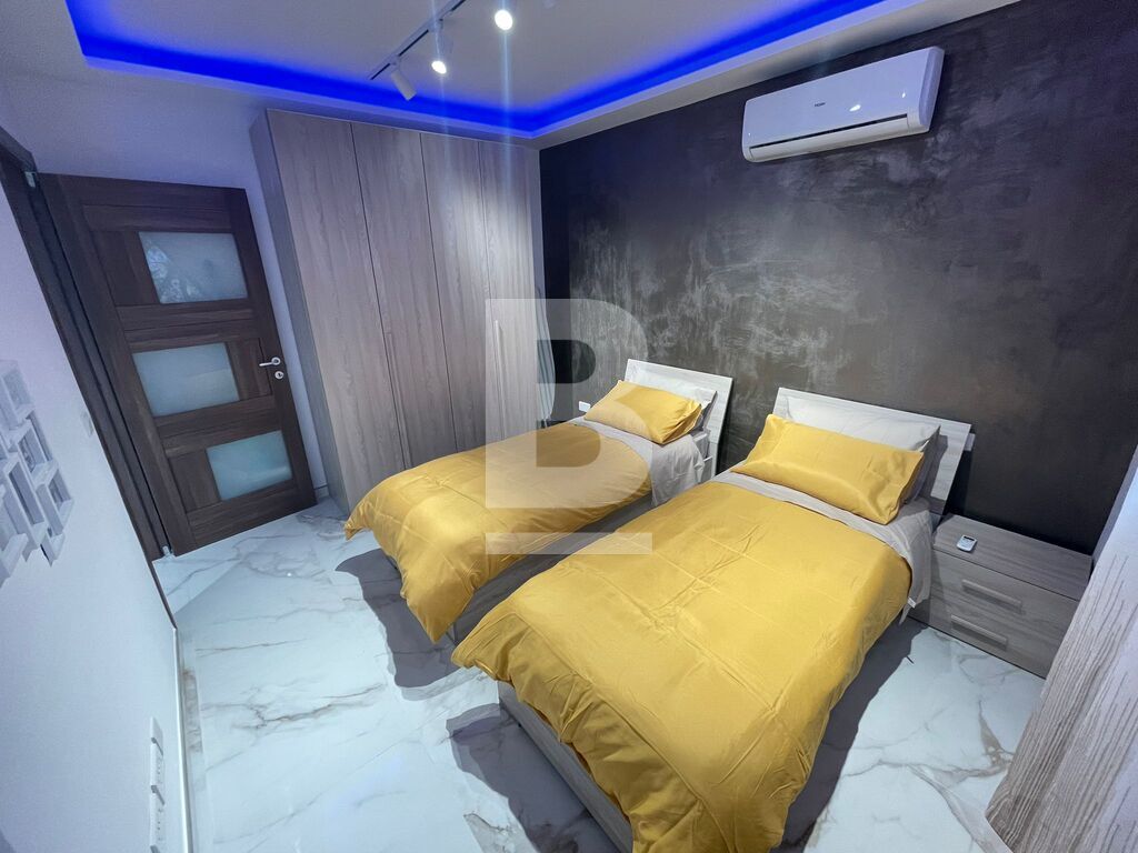 Luxuriously finished and furnished, fully air-conditioned APARTMENT in Attard, comprising a large open plan kitchen, living and dining area with a front spacious balcony overlooking a garden, two double bedrooms - master with an en-suite shower and balcony and main walk-in spa effect shower. This highly finished kitchen has a smart touch oven and aspiration induction hob.