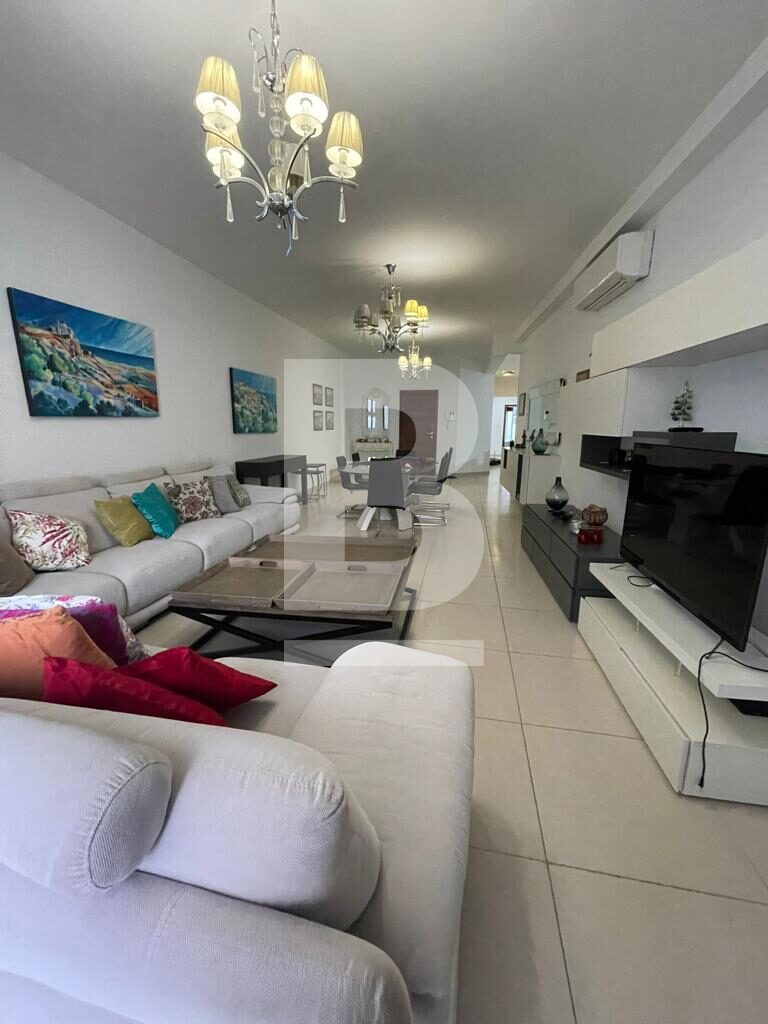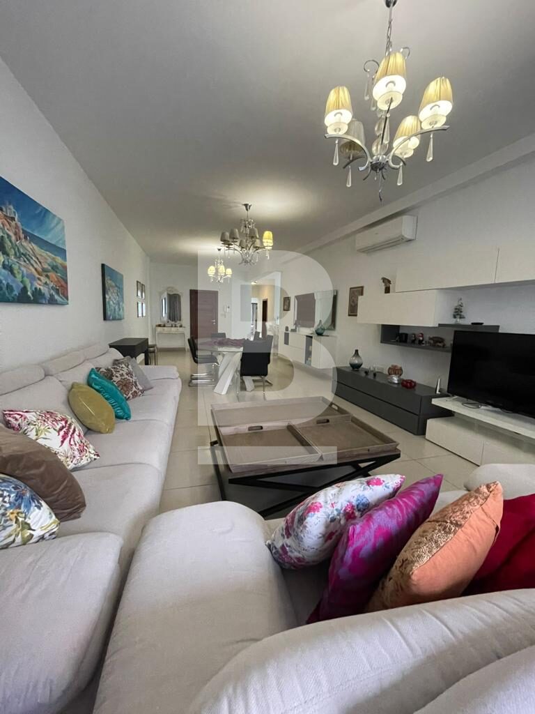 Modern, fully furnished and generously sized APARTMENT served with lift, forming part of a smart development and situated minutes away from the Sliema ferries. Attractive open plan layout in the form of a large sitting/dining room and kitchen combined, 3 double bedrooms - 2 with en suite shower rooms, separate main bathroom, large front and back balconies. Items include: washing machine, dish washer, microwave and TV. This property also enjoys use of an underlying one-car garage space.