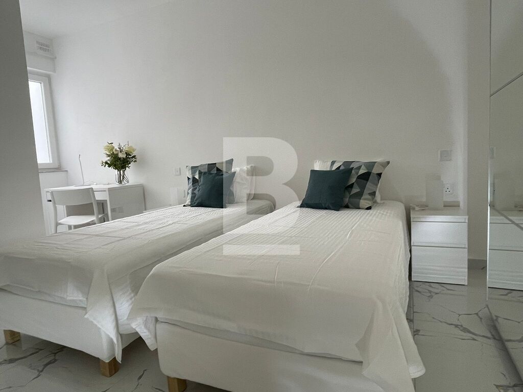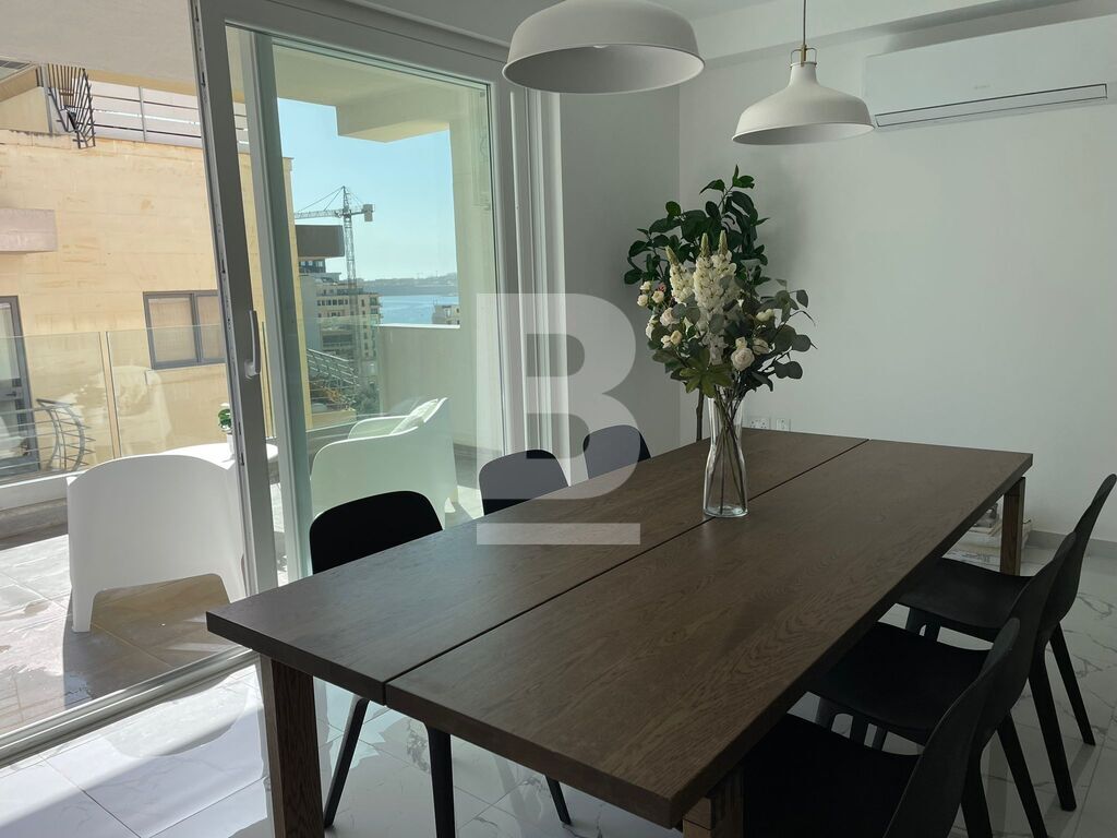 Highly finished APARTMENT located in Sliema, close to all amenities and within walking distance to the waterfront and Sliema ferry. This property consists of a welcoming open plan kitchen, living and dining area, 2 bedrooms, both having a small balcony, en-suite shower, separate shower room and a good sized front balcony, enjoying town and distant sea views. Ideal for entertaining. Items included: air-conditioning, fireplace, washing machine, dryer, microwave, dishwasher and TV.