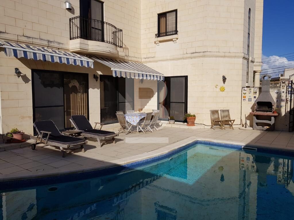 Fully furnished, semi detached VILLA with pool in Attard. Property comprises combined kitchen/living area, dining room, 3 bedrooms - main with en-suite shower room, main bathroom, spare shower room, utility room, wash room, back terrace, swimming pool with deck and bbq area, front garden, tool room, basement, car port and an underlying 8-car garage. Property also enjoys panoramic distant views from its large roof which is ideal for entertaining.