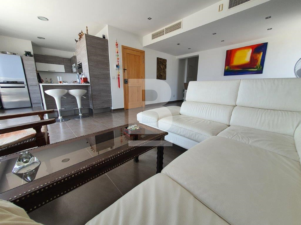 Spacious three bedroom APARTMENT, situated in a prestigious block in a designated area, Ta’ Monita. Property layout consists of a spacious lounge, kitchen, dining room, en-suite to master bedroom and a good sized front balcony enjoying sea views. This property comes fully furnished and includes air-conditioners, television, washing machine, microwave and a dishwasher. Complimenting this property is the use of a communal pool.
