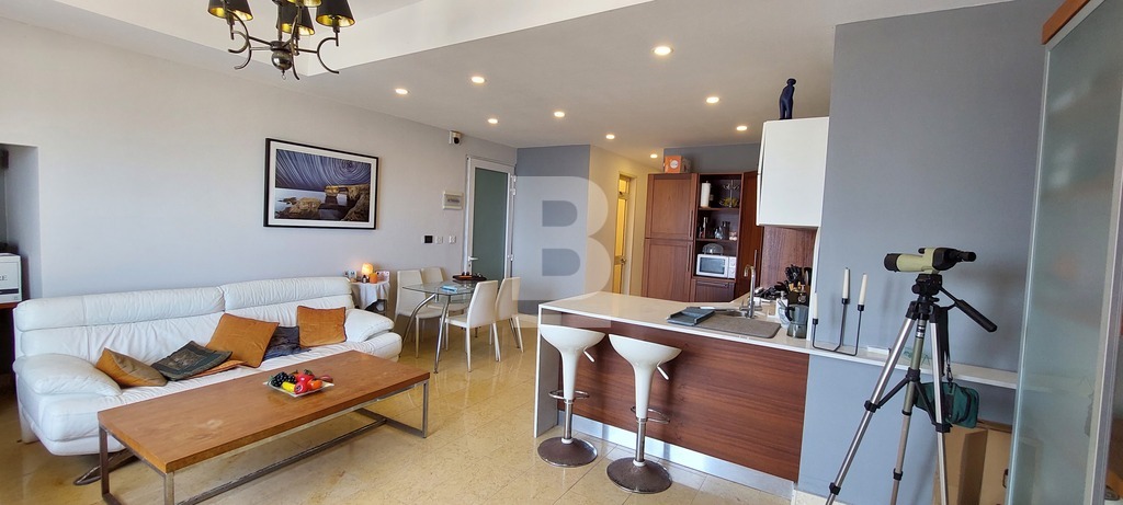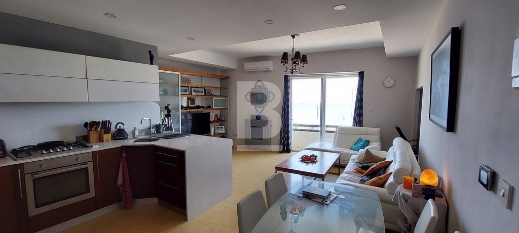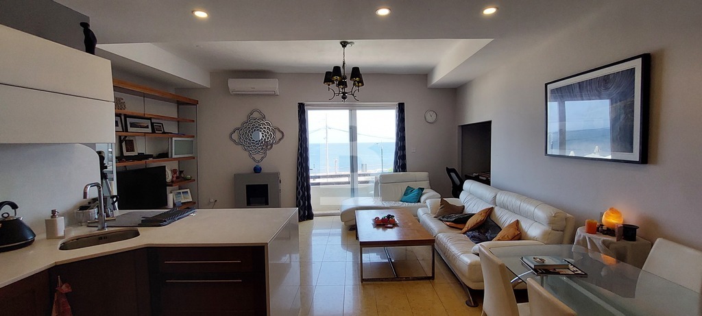 A bright 3 bedroom first floor sea front apartment in Xghajra comprising an open plan kitchen, living and dining with a small study space and a balcony along the facade enjoying unobstructed guaranteed sea views and a lovely swimming zone. This apartment offers 3 bedrooms, main ensuite, a large guest bathroom, an internal yard and use of roof. The apartment is fully conditioned and also boasts of underfloor heating and ethanol fireplace which makes this apartment really cosy in the winter days, whilst in summer one can enjoy the luxury of being at sea front and easy parking.