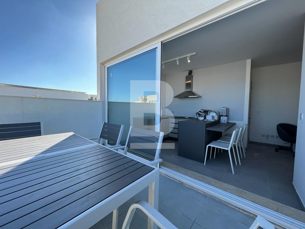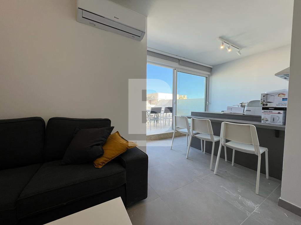 A new and modern one bedroom Penthouse situated in the heart of Msida. The layout consists of an open-plan kitchen and living area with plenty of natural light. A floor-to-ceiling sliding glass door in the open living area leads to a panorama corner terrace, perfect for relaxing and entertaining. Modern furniture in natural tones brings warmth to the apartment. The kitchen is fully equipped and comprises stainless steel appliances and custom cabinetry. The dining area next to the kitchen comfortably seats three persons. The living room has a modern interior and linear decor. The apartment is fully air-conditioned. Excellent transport links and five minutes walk to shopping, restaurants, bars and cafes.
