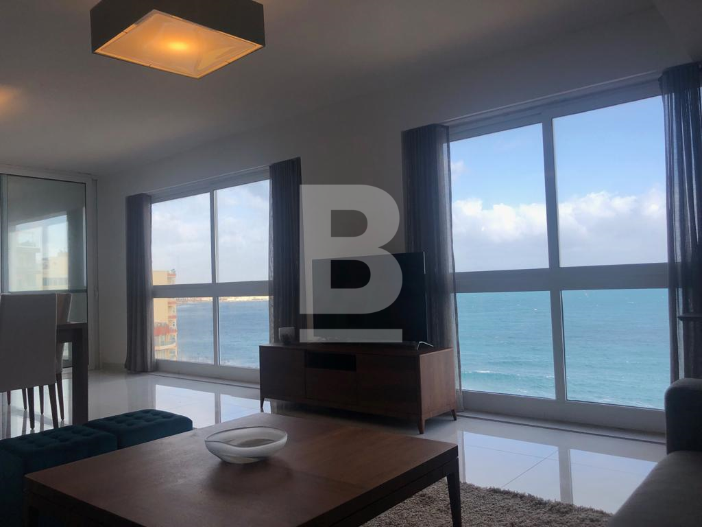 A beautiful recently refurbished and fully furnished sea view apartment, situated on the Sliema Promenade and within walking distance to all amenities. Property comprises a spacious open plan kitchen / living / dining room leading to a very large balcony with outdoor furniture, two double bedrooms (one with with en-suite bathroom) and main bathroom. This property is fully air-conditioned and includes TV, washing machine, dryer, microwave lift and intercom.