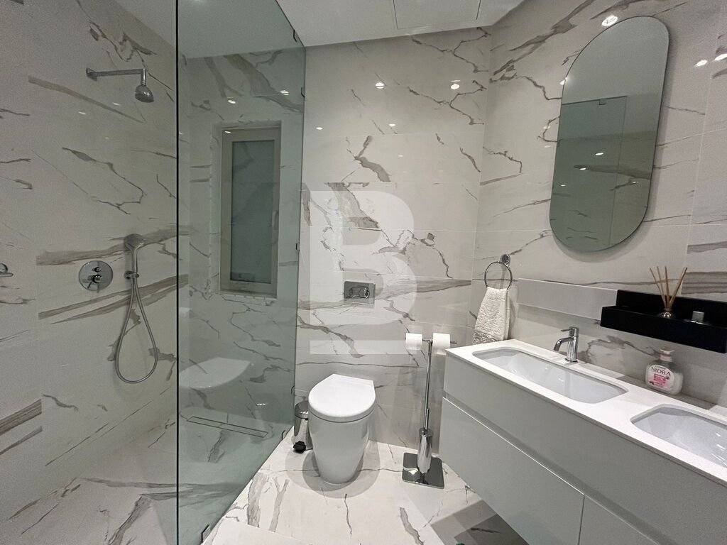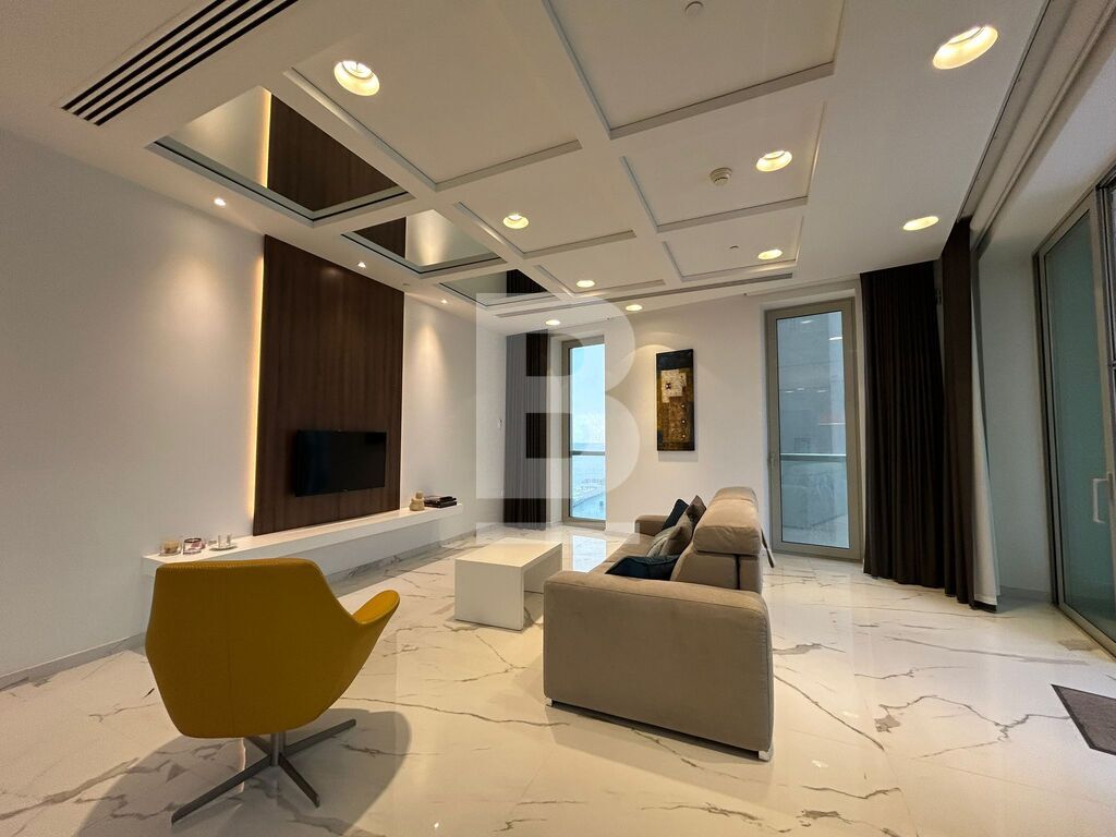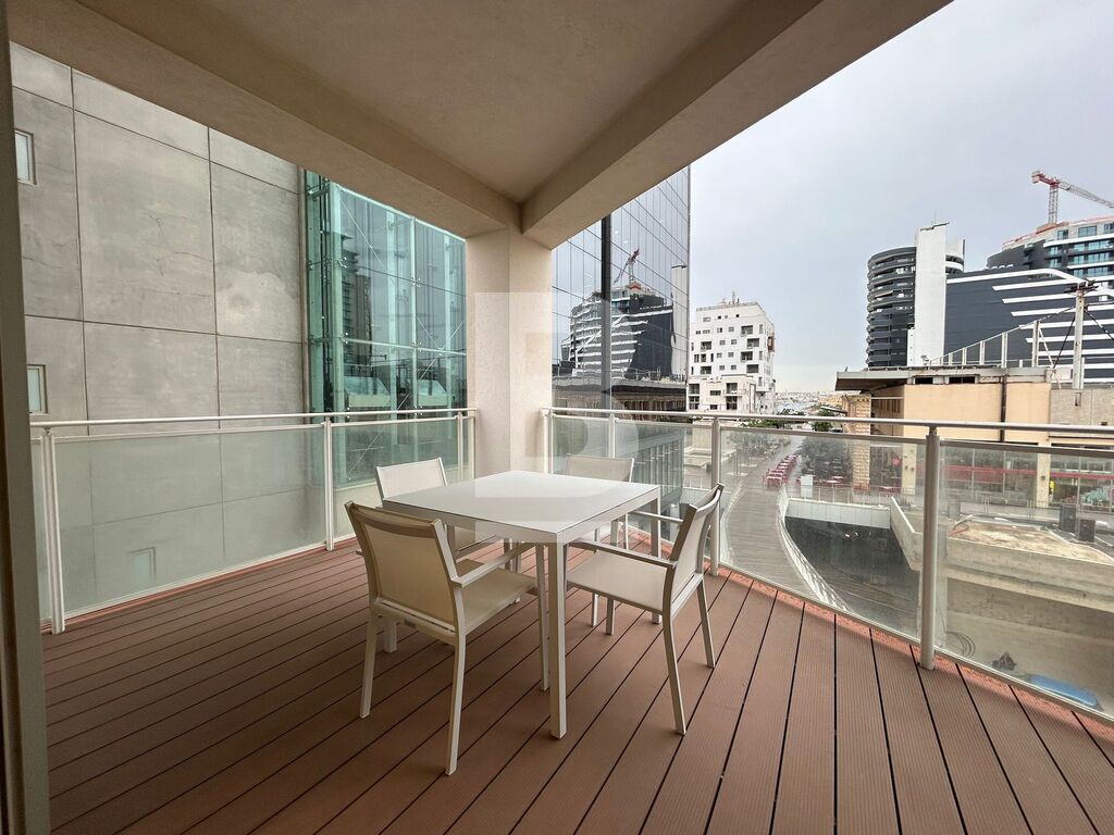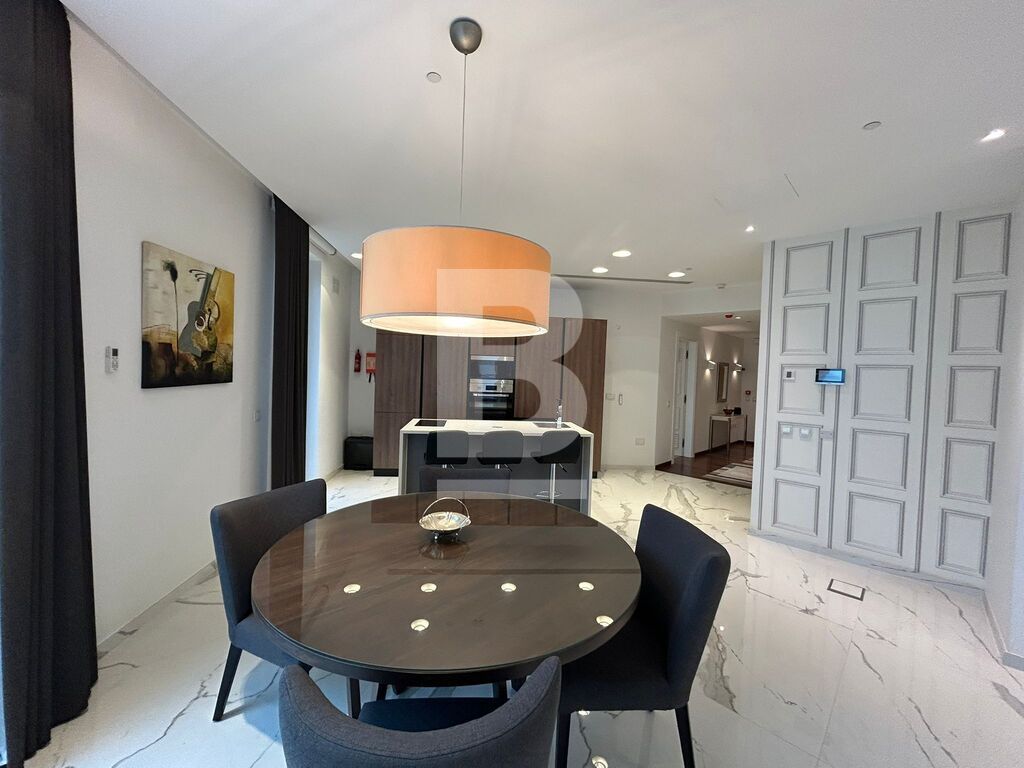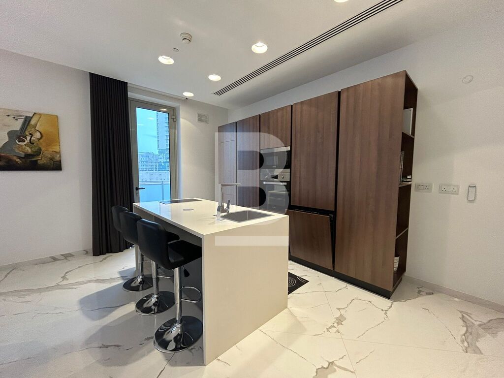 A highly finished and fully furnished apartment situated within this luxurious development which includes communal pool area, gardens, shopping arcade and various restaurants and cafeterias. Accommodation comprises an entrance hall, open plan kitchen / living / dining area with a very spacious balcony with distant sea views, the master double bedroom with en-suite and a guest bathroom. Apartment is fully equipped with HVAC system and includes 2 televisions, washing machine, tumble dryer, microwave, dishwasher, video hall porter, motorized blinds and under floor heating in the bathroom.