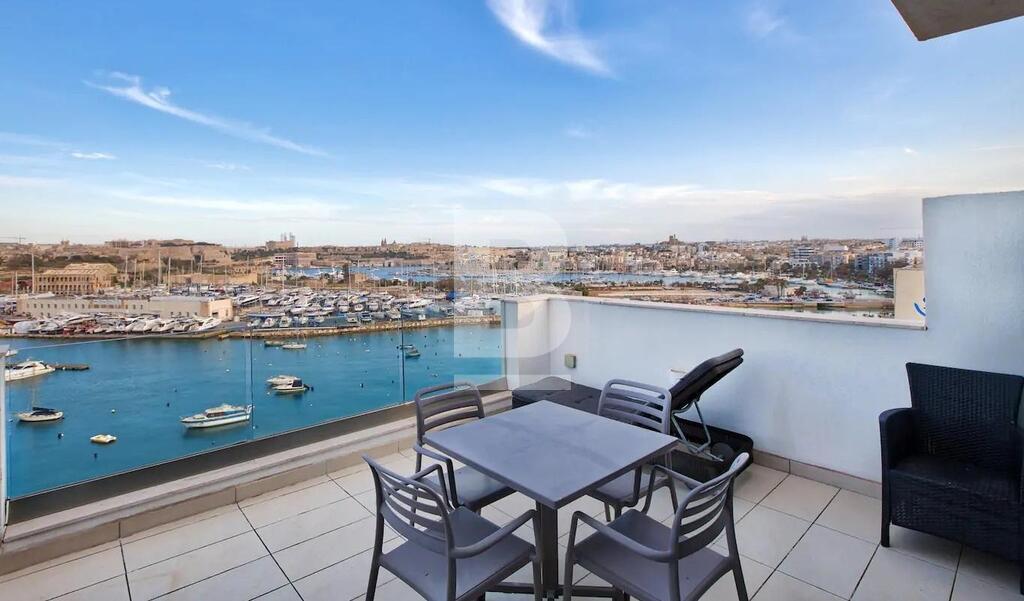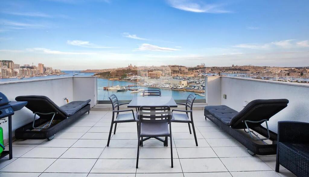 This super modern Penthouse enjoys spectacular views of the Valletta Bastions. It is furnished to a very high standard and enjoys natural light throughout. The property comprises an open plan kitchen / living / dining area, 2 bedrooms and one bathroom. One of the bedrooms is a double bedroom and the other is a single bedroom, which could also be a study. The penthouse has a large terrace enjoying stunning views which is perfect for entertaining and is close to all amenities.