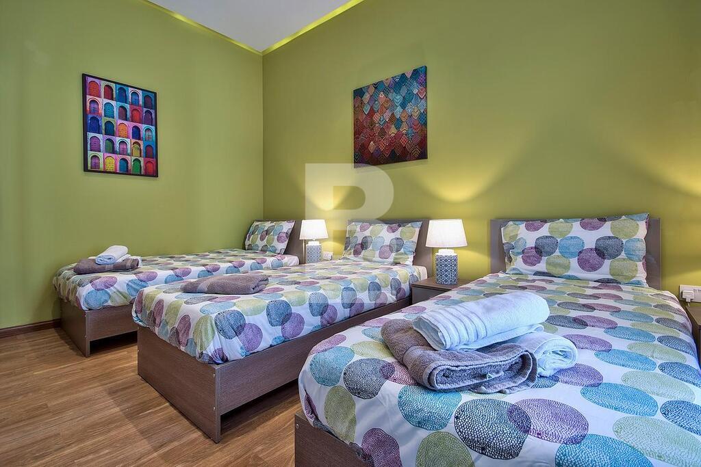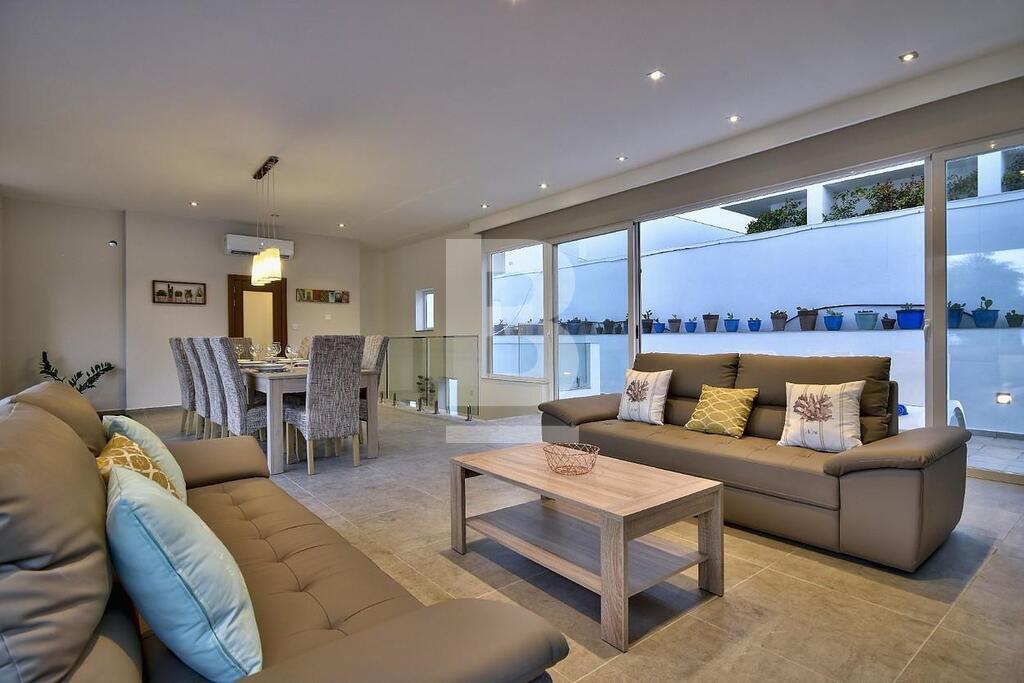 Fully furnished sensational VILLA, situated in the heart of Mellieha, set in a lush valley which grants plenty of privacy. This four bedroom villa offers recreation and relaxation comp[rising of an open plan fully equipped kitchen, spacious living room leading onto a marvellous the terrace having a private pool and sunbathing area, BBQ area with outdoor dining facilities. The deck also features a lounge area, perfect for entertaining during the glorious Maltese sunsets. The lower level includes an indoor heated pool, hot tub which comes fully equipped with modern and classic entertainment facilities.