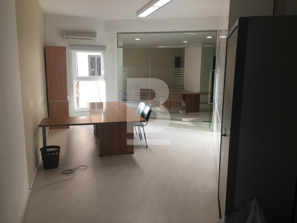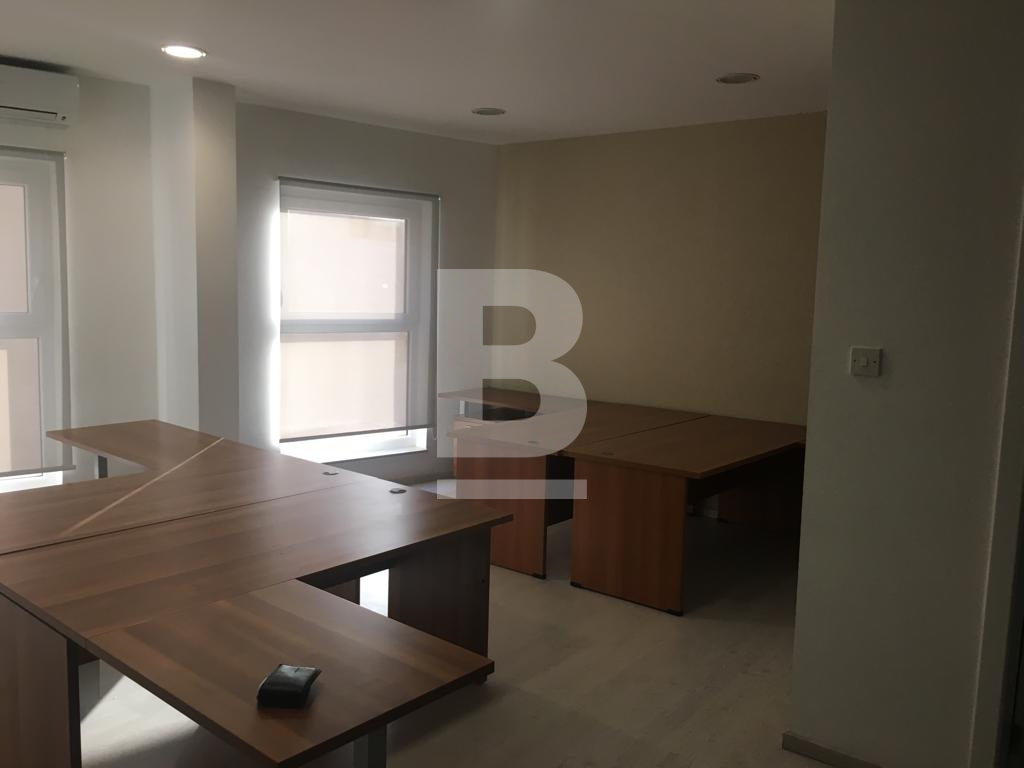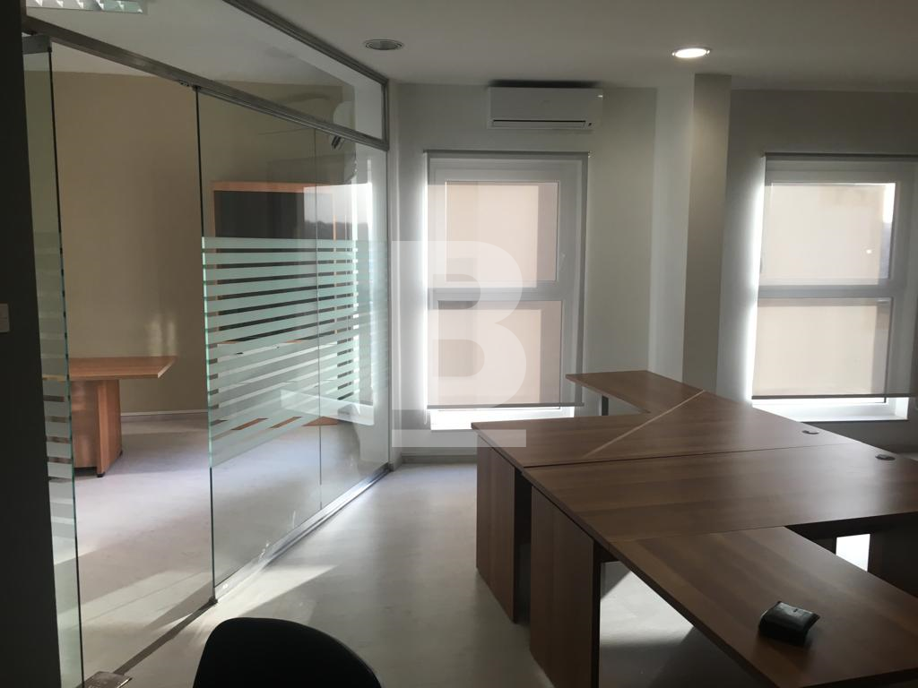 A lovely bright 75 sqm office on the 6th floor in a prime business area of Sliema, surrounded by offices, coffee shops and shopping malls. Comprising of an open plan area of 7/8 desks, a separate glass partitioned room that can be used as a boardroom, a kitchenette, male and female toilets and ac throughout.