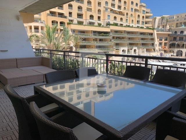 Bright and airy APARTMENT, served with lift. Forming part of a lifestyle development Portomaso. Measuring approx 150sqm comprising of an entrace hall. open plan fully equipped kitchen/ living/ dining area, leading onto a spacious front terrace enjoying fantastic marina views and open sea views having ample space for entertaining. Three double bedrooms, master having an en-suite and one on the upper level, washroom, guest toilet and study. Extras include; lift, washing machine, dryer, dishwasher, TV and air conditioning throughout.