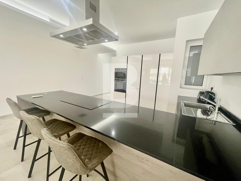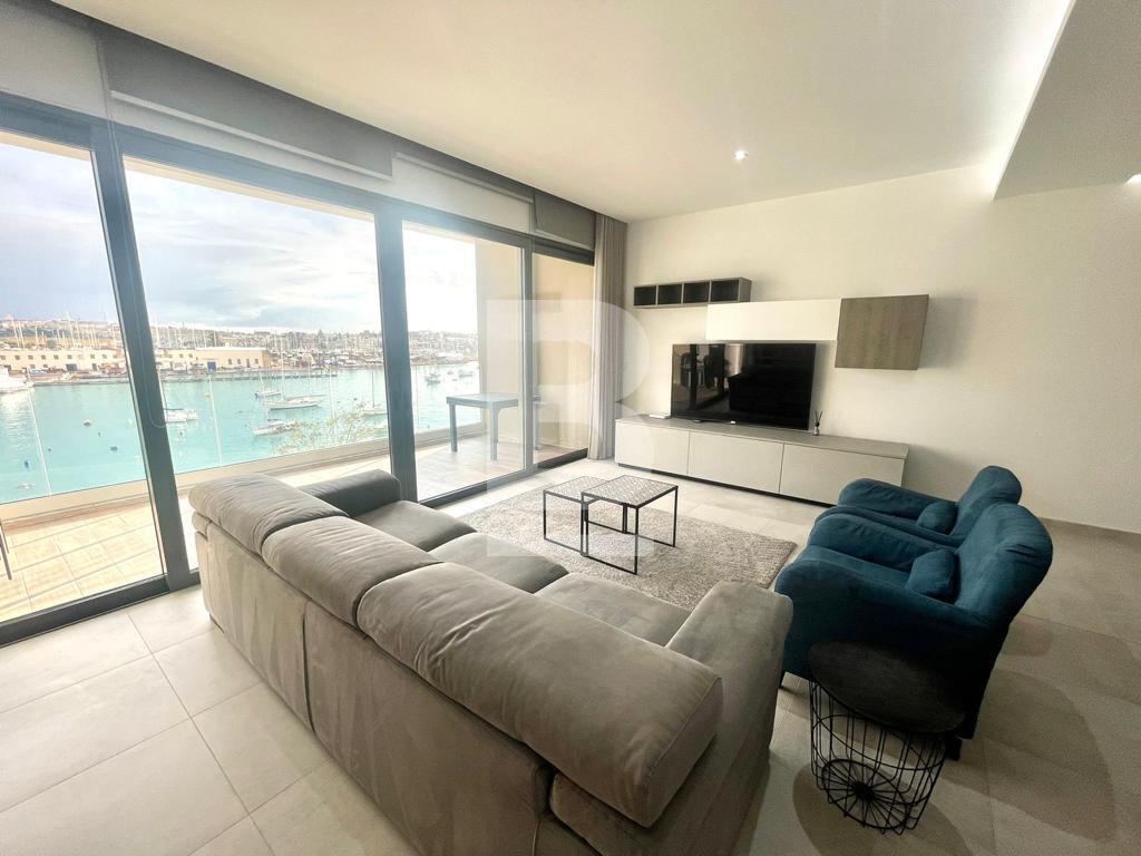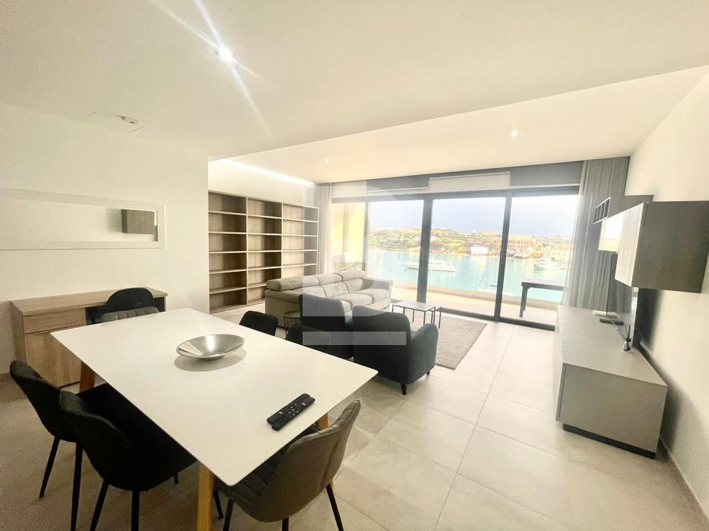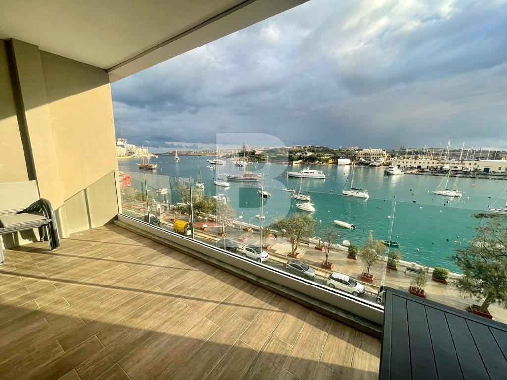 A seafront, newly built, 5th floor apartment exquisitely designed throughout comprising of an open plan kitchen / dining / living room and enjoying a large private terrace with breath taking views of Sliema Creek, Manoel Island and the historic 16th Century Valletta bastions. 3 double bedrooms, 2 en-suite and guest toilet at the back of the property. Property is fully equipped and has Ac throughout.