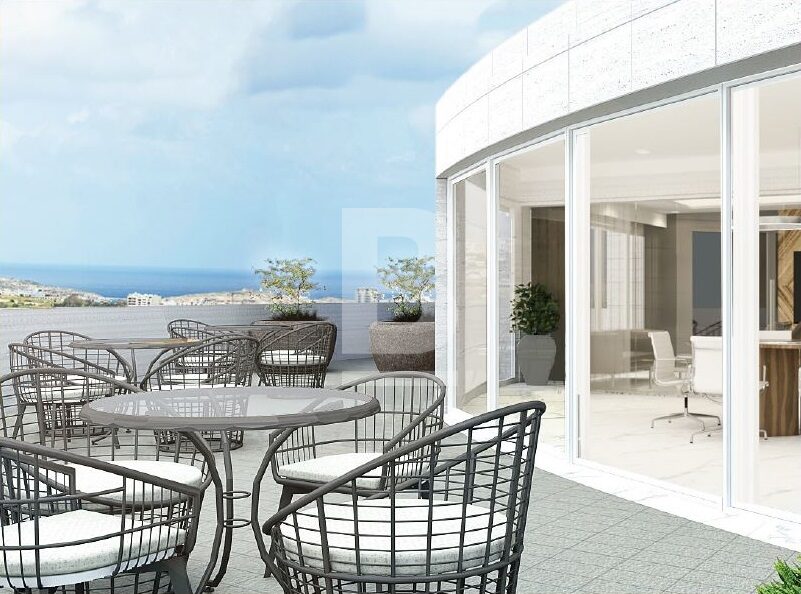 Strategically positioned Commercial PENTHOUSE, on the fifth floor of a BUSINESS CENTRE, located in one of Mostas busiest roads offering the perfect balance between green spaces and the everyday hustle and bustle of the busy town surrounded by all amenities. The penthouse level will be offered in Shell form with the option for the owner to Finish off as per clients request at a separate charge. The floor measures 277sqmts internally (@ 250/sqmt/annum) and 160sqmts of external terraces (@ 120/sqmt/annum). The layout currently is all open plan with the option to be designed and arrnaged according to ones preferences. As a further option to this floor, one can rent a separate 277sqmts of external space (@ 130/sqmt/annum)at roof level which has been fully set up as an entertaining area/external workspace as well as having the possibility to fit in a pool. Interconnecting car spaces are available at basement level and charged separately. The faade and common parts of the Business Centre are finished to high standards.