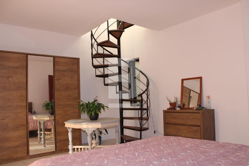 This duplex penthouse is located in a residential area known as the Village in St Julians, just 10 minutes away from Spinola Bay and most amenities. The apartment comprises, on the lower floor, 2 double bedrooms, separate bathroom and an open plan kitchen / sitting / dining room. On the upper floor, accessible from a staircase in the bedroom, one may find another room, which can be used as a third bedroom or a study, leading to a spacious terrace with distant sea-views. The property is equipped with washing machine and air-conditioned.