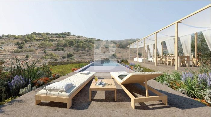 A one of kind estate situated in one of island most prominent location for Villas, having a total of 8000 Sqm surrounding land which is all overlooking a valley. The house will be built on a foot print of Circa 240 Sqm which will consist of a spacious open plan/ Kitchen/ Dining living area, 3/4 double bedrooms all of which served with en-suite facilities. outdoor area will include pool and deck area with ample of surrounding gardens which provides privacy, property enjoys breath taking open valley views. Property is being offered in Shell form with the option to be finished tailored made to clients requirements. Being that the property is on plan, the prospective buyer will have the flexibility to built the property to his requirements. More info can be obtained from our offices, early viewing is recommended.